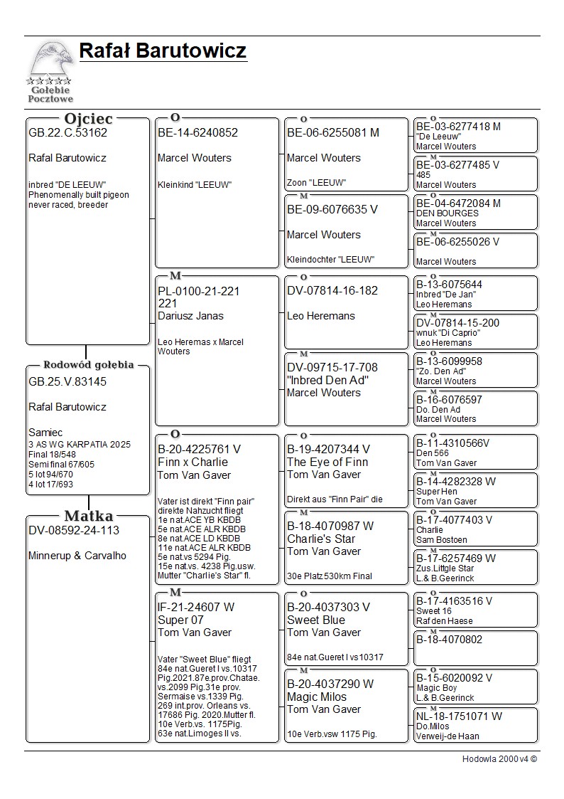 | Lot | Data | Dystans [km] | Ilość gołębi | Pozycja | Prędkość [m/min] |