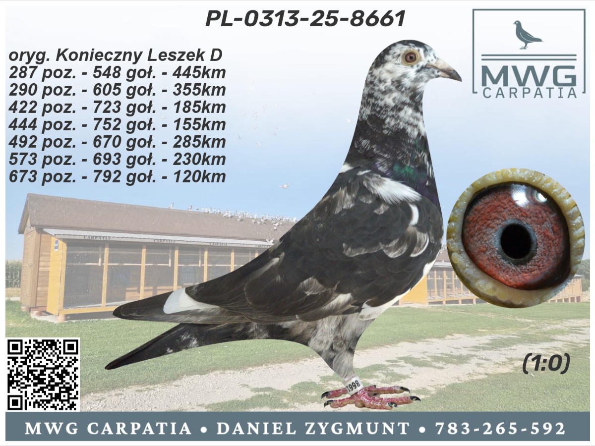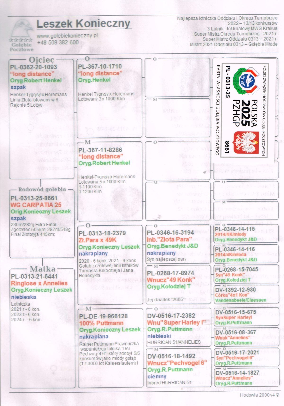 | Lot | Data | Dystans [km] | Ilość gołębi | Pozycja | Prędkość [m/min] |