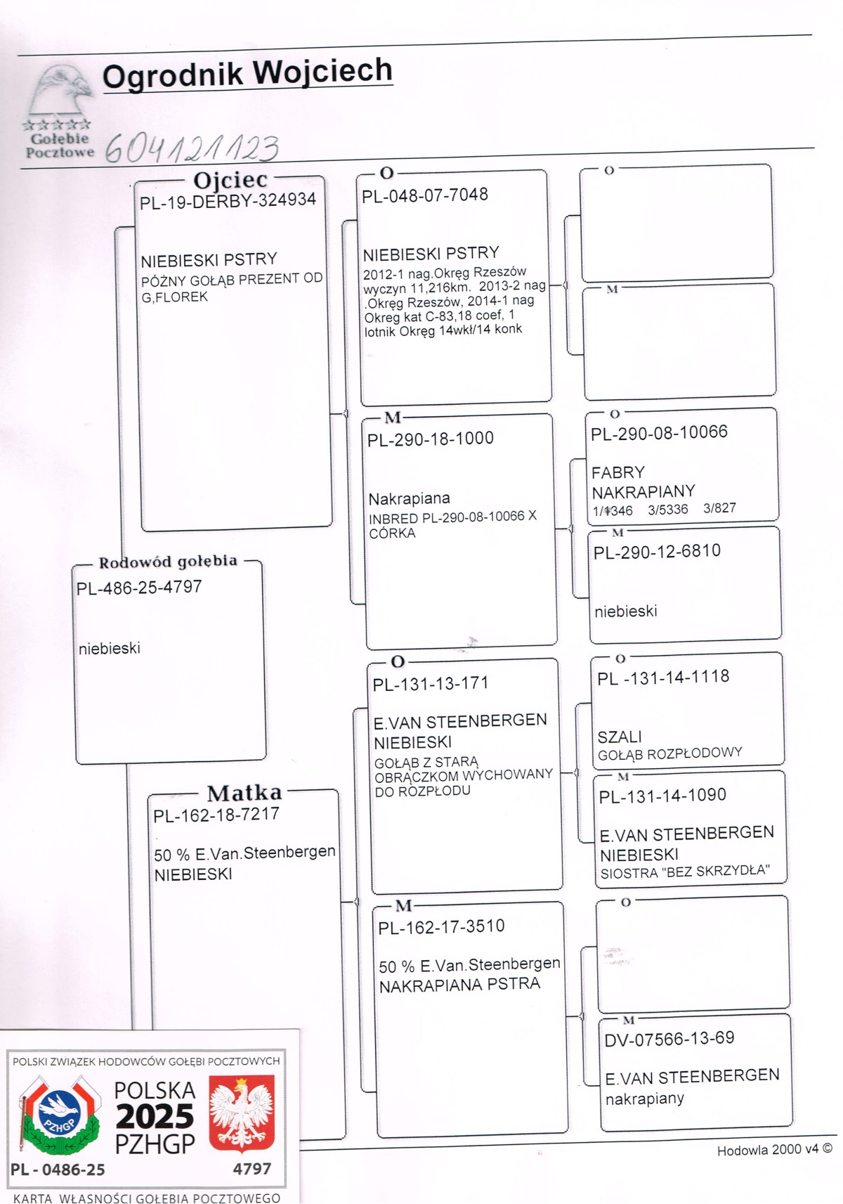 | Lot | Data | Dystans [km] | Ilość gołębi | Pozycja | Prędkość [m/min] |