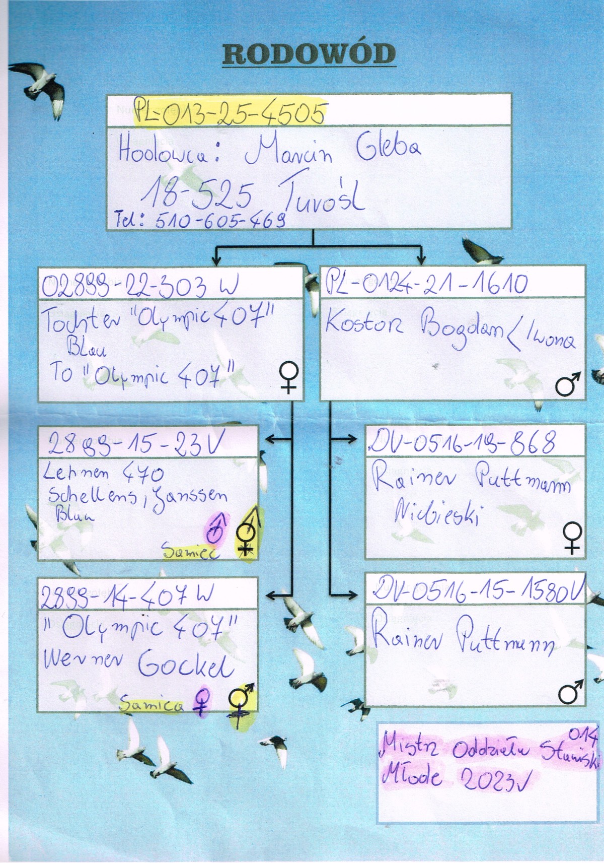 | Lot | Data | Dystans [km] | Ilość gołębi | Pozycja | Prędkość [m/min] |