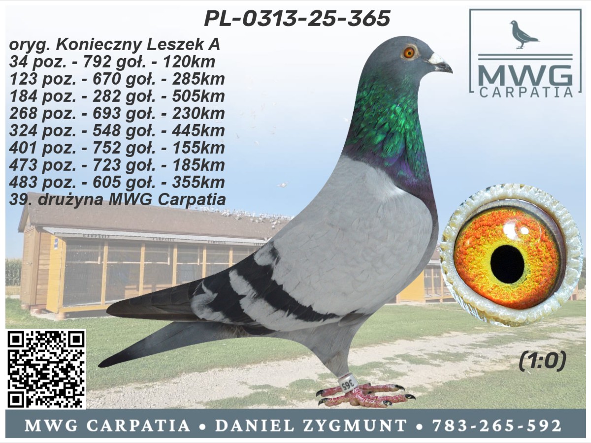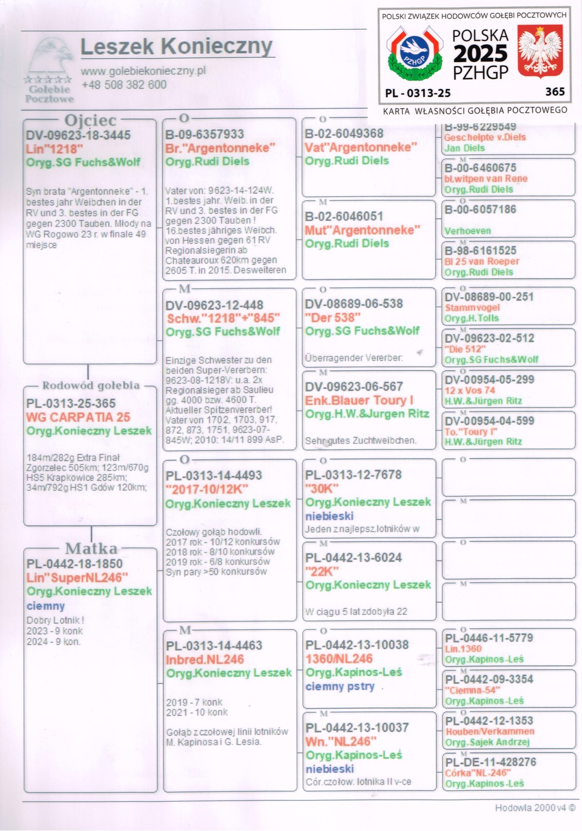 | Lot | Data | Dystans [km] | Ilość gołębi | Pozycja | Prędkość [m/min] |