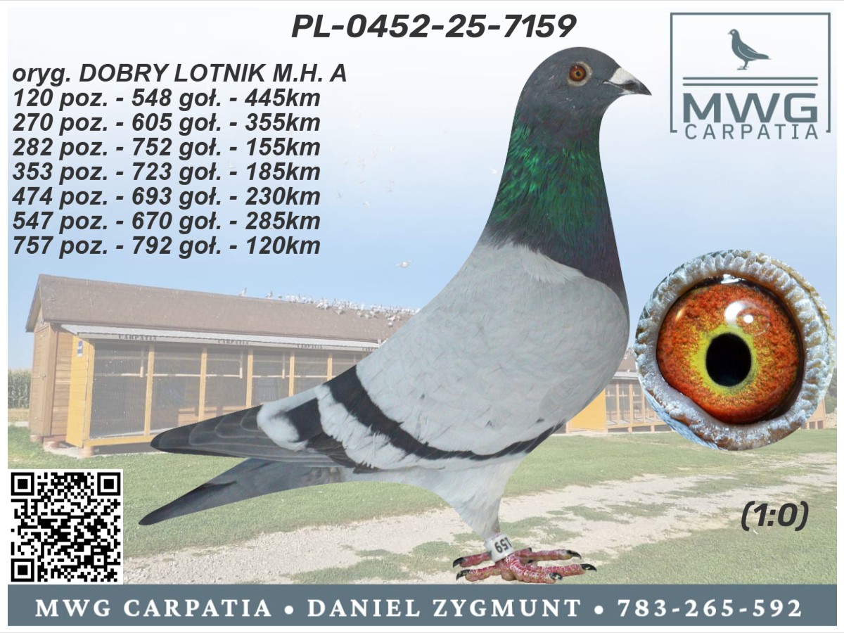 | Lot | Data | Dystans [km] | Ilość gołębi | Pozycja | Prędkość [m/min] |