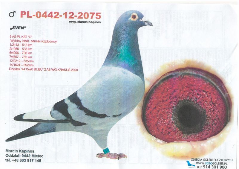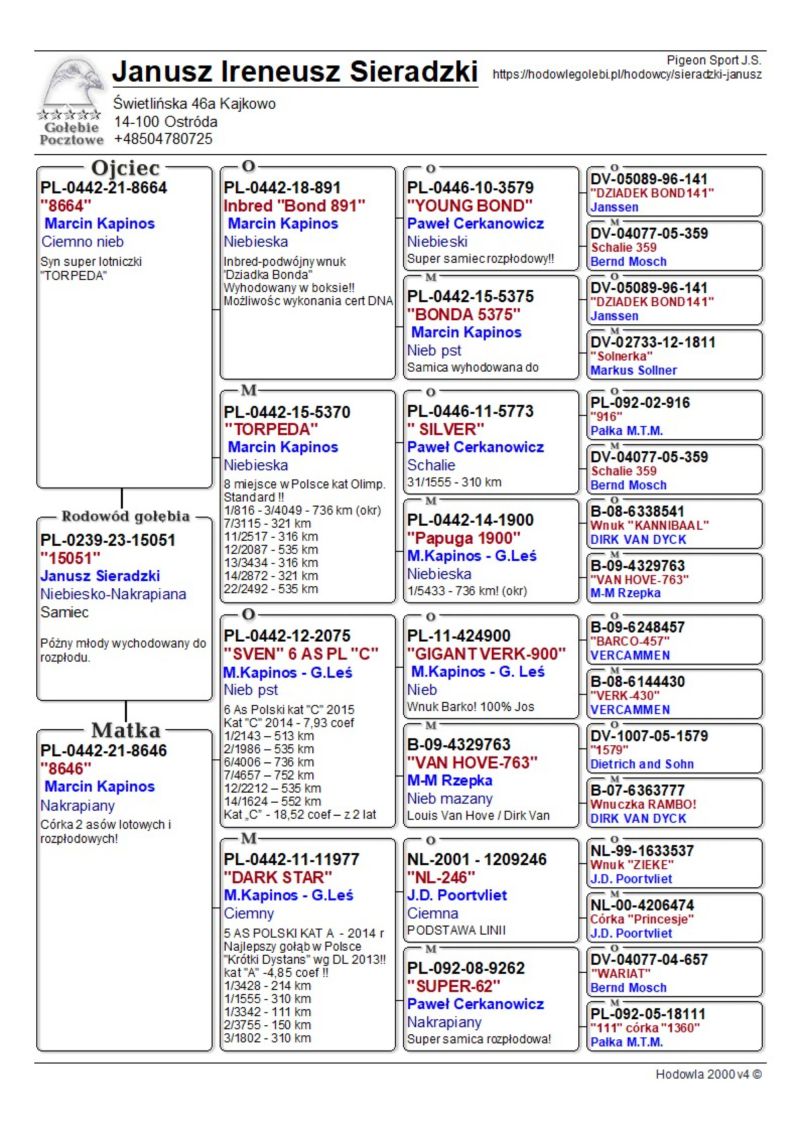 Oryginalny gołąb z hodowli Janusza Sieradzkiego. Szczegóły pochodzenia w rodowodzie. Więcej informacji pod nr tel.504780725
