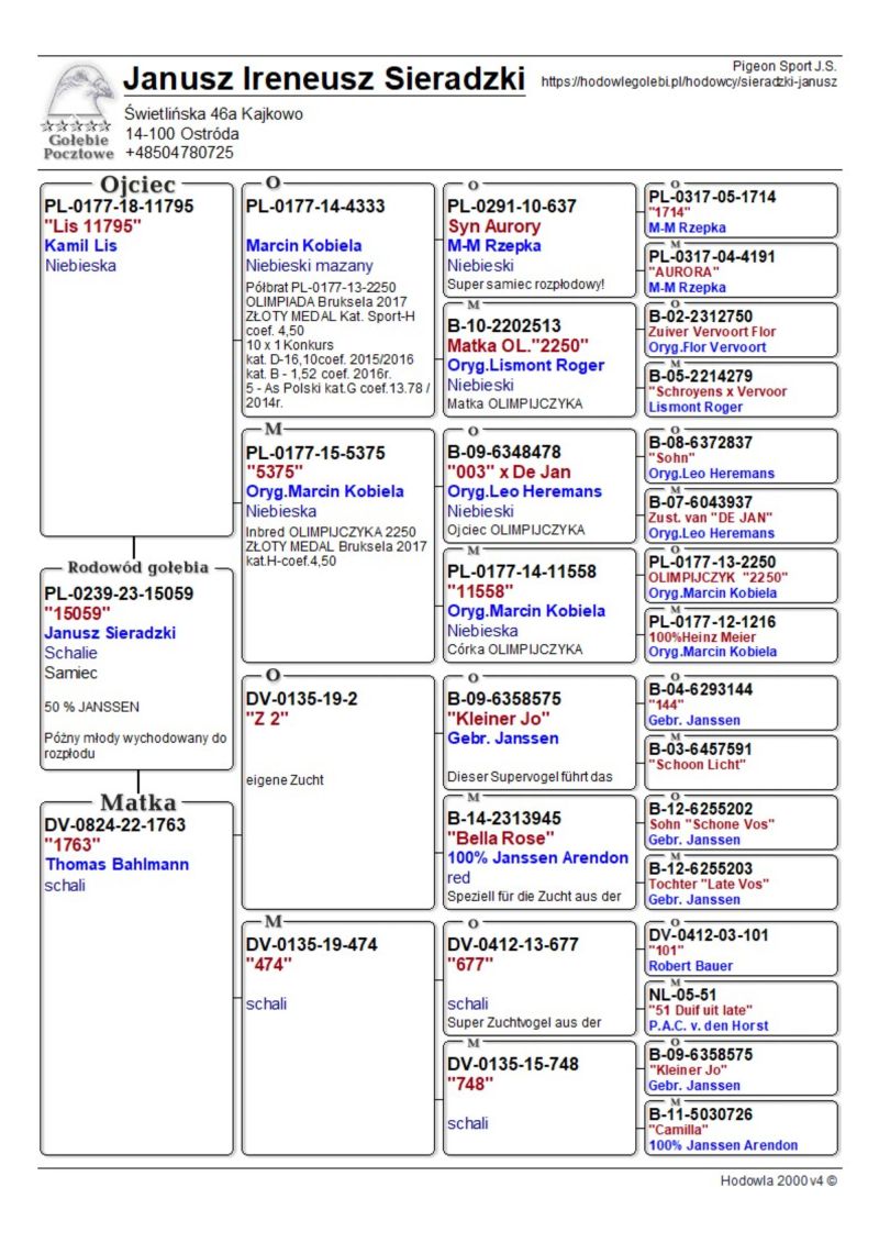 Oryginalny gołąb z hodowli Janusza Sieradzkiego. Szczegóły pochodzenia w rodowodzie. Więcej informacji pod nr tel.504780725