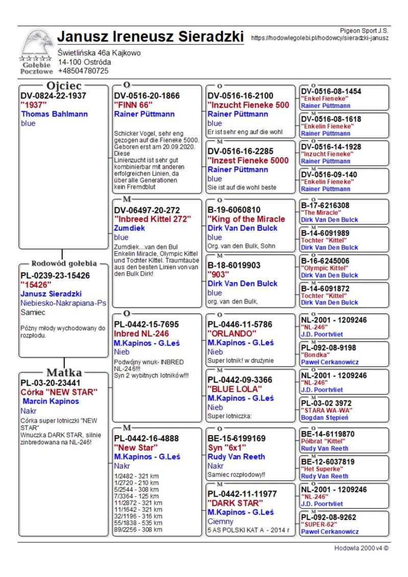 Oryginalny gołąb z hodowli Janusza Sieradzkiego. Szczegóły pochodzenia w rodowodzie. Więcej informacji pod nr tel.504780725