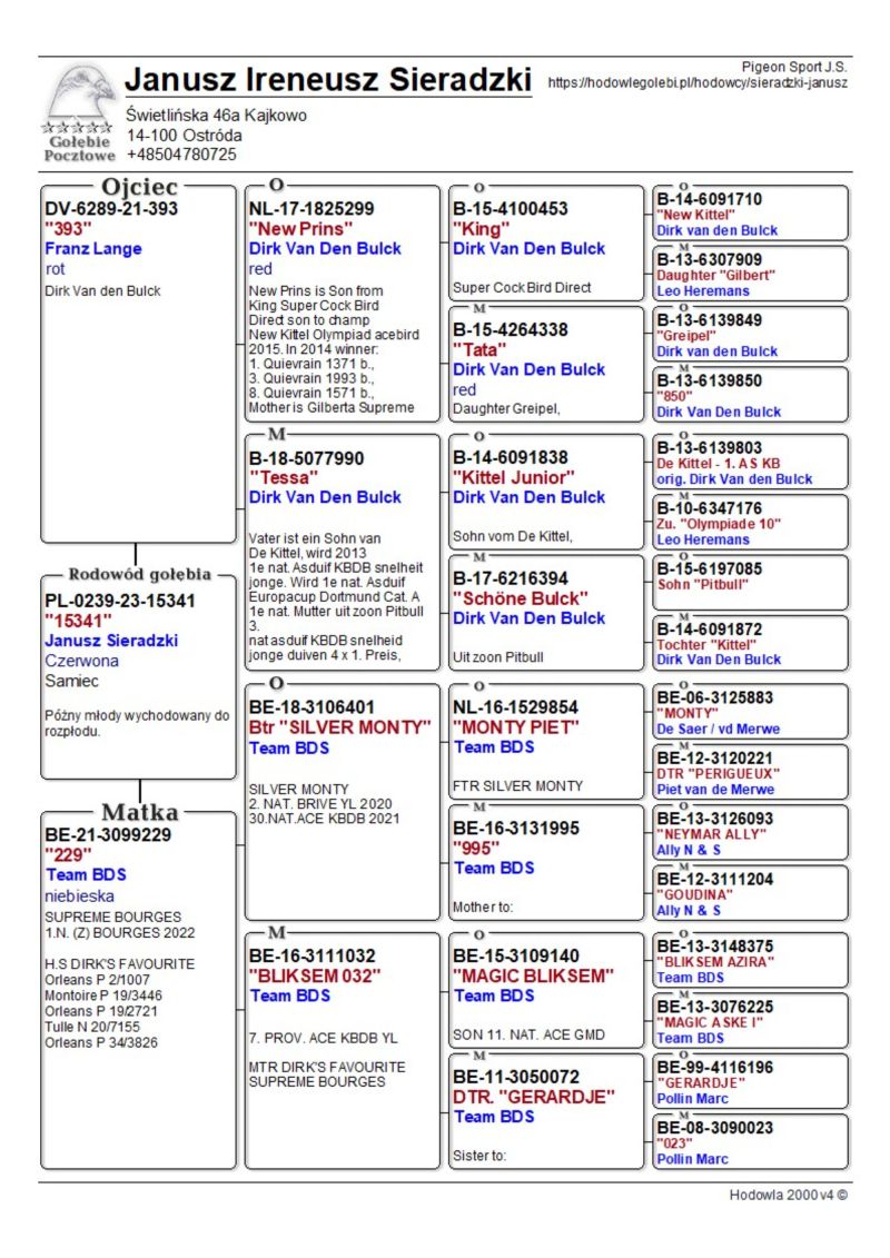 Oryginalny gołąb z hodowli Janusza Sieradzkiego. Szczegóły pochodzenia w rodowodzie. Więcej informacji pod nr tel.504780725
