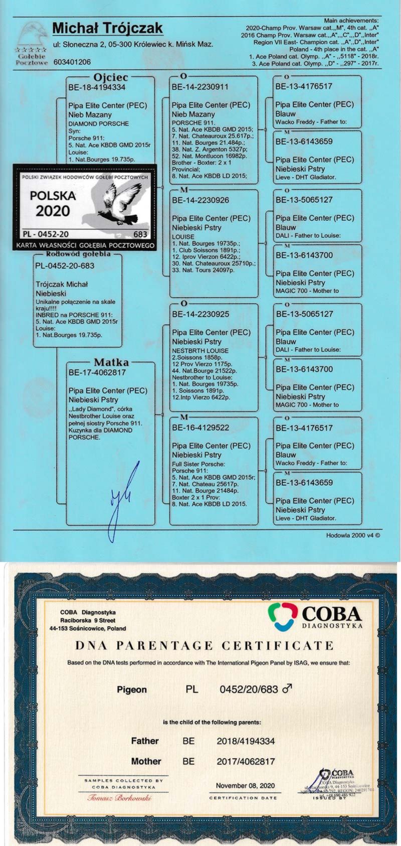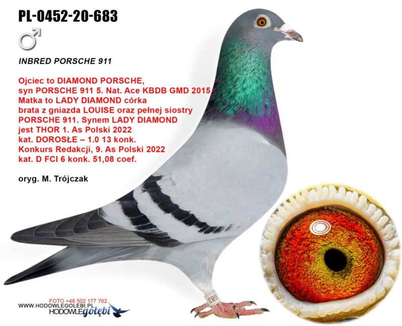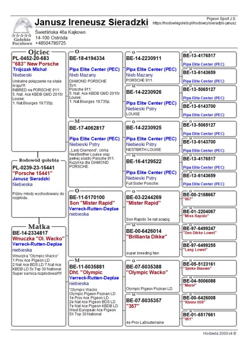 Oryginalny gołąb z hodowli Janusza Sieradzkiego. Szczegóły pochodzenia w rodowodzie. Więcej informacji pod nr tel.504780725