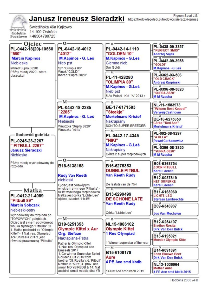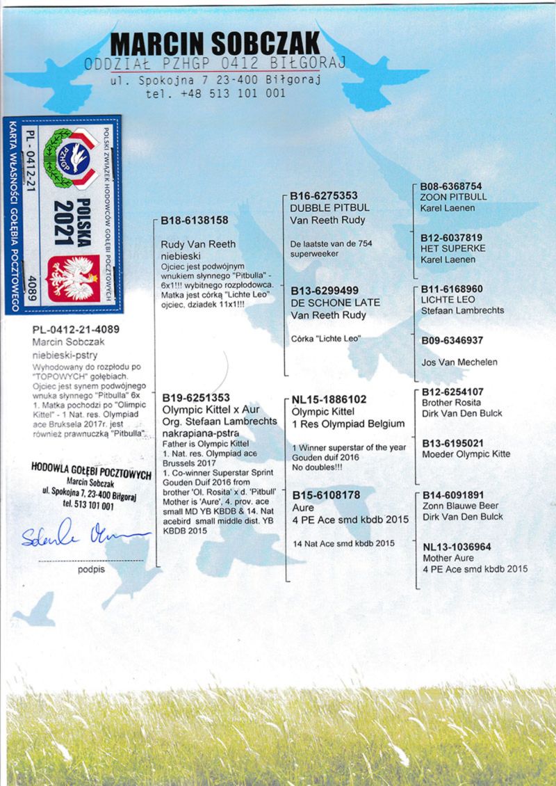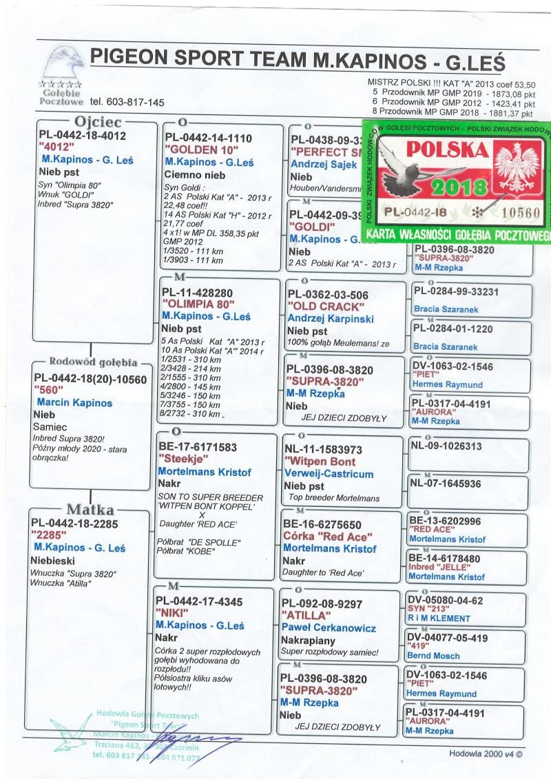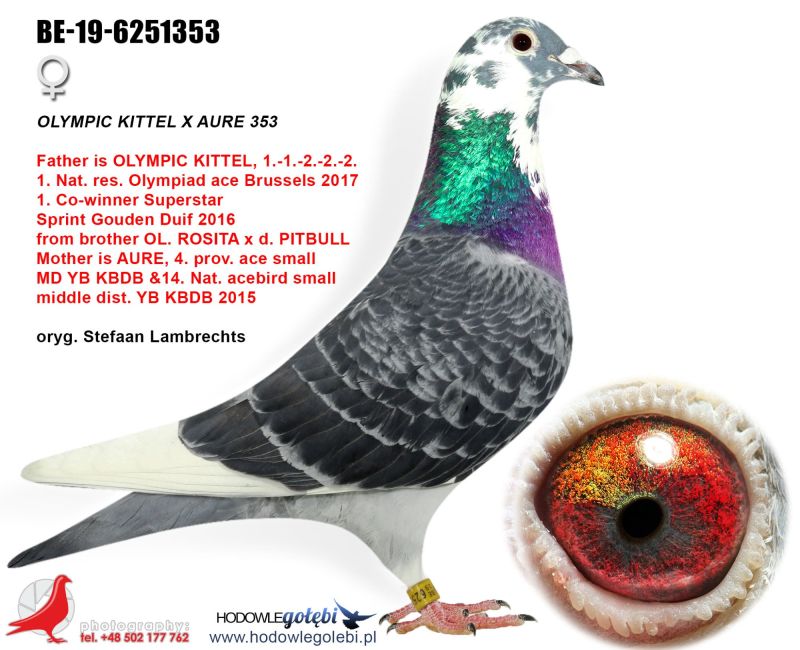 Oryginalny gołąb z hodowli Janusza Sieradzkiego. Szczegóły pochodzenia w rodowodzie. Więcej informacji pod nr tel.504780725