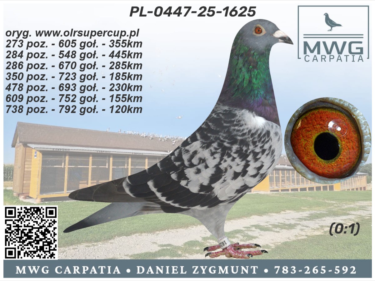 | Lot | Data | Dystans [km] | Ilość gołębi | Pozycja | Prędkość [m/min] |