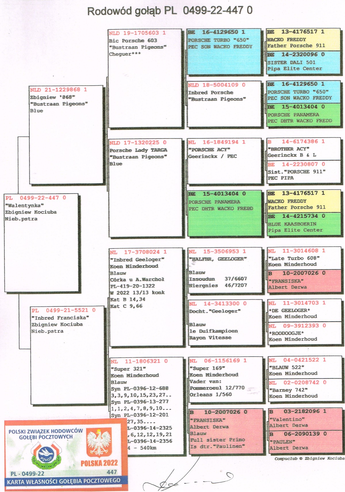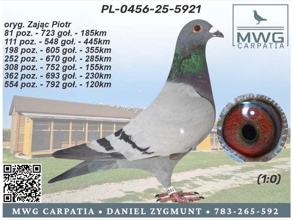 | Lot | Data | Dystans [km] | Ilość gołębi | Pozycja | Prędkość [m/min] |