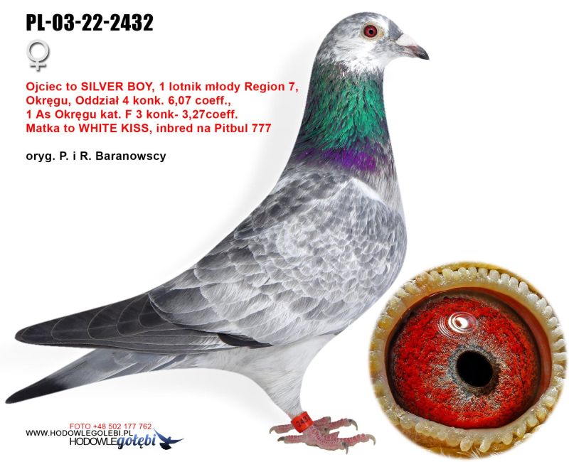 Oryginalny gołąb z hodowli Janusza Sieradzkiego. Szczegóły pochodzenia w rodowodzie. Więcej informacji pod nr tel.504780725