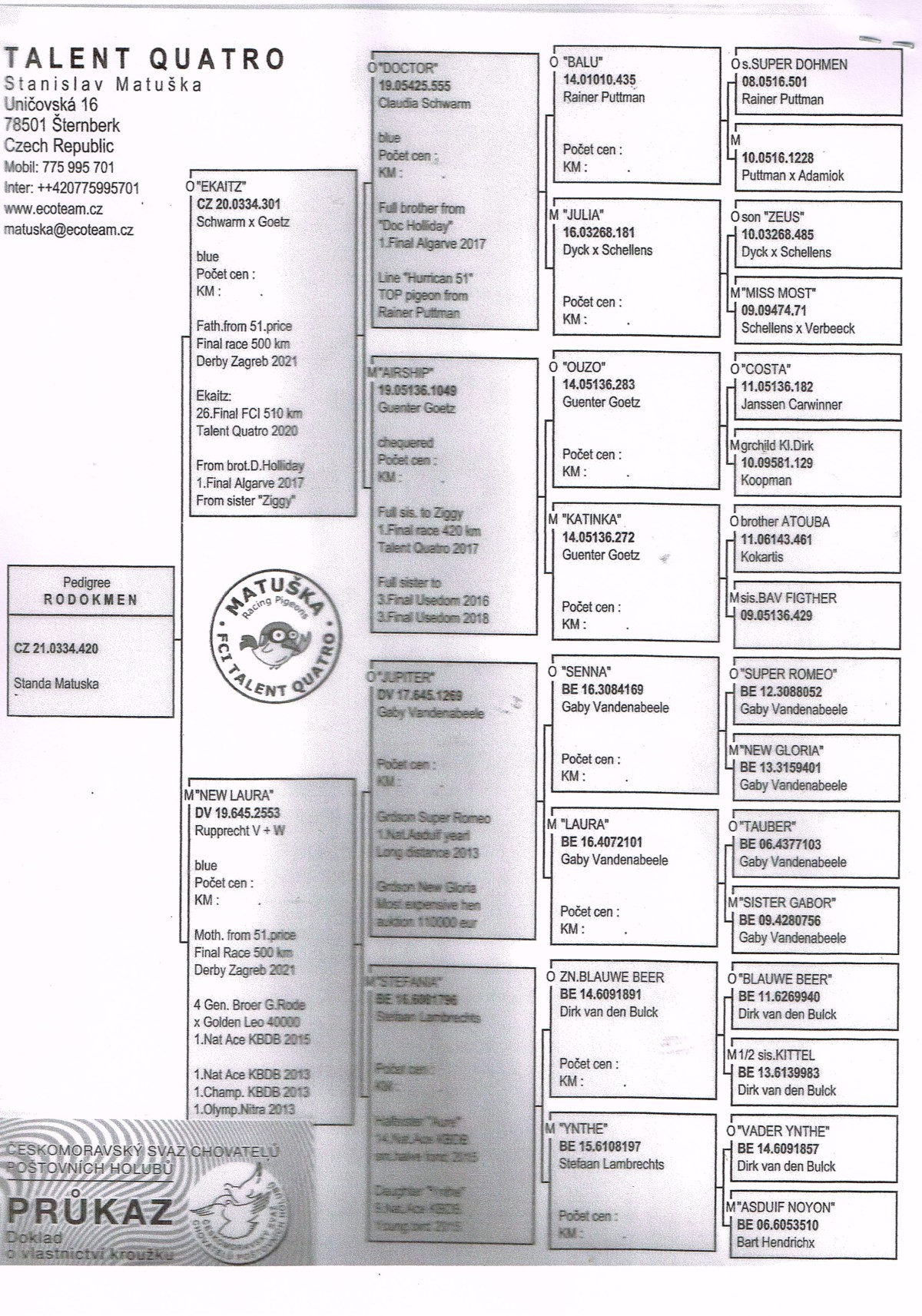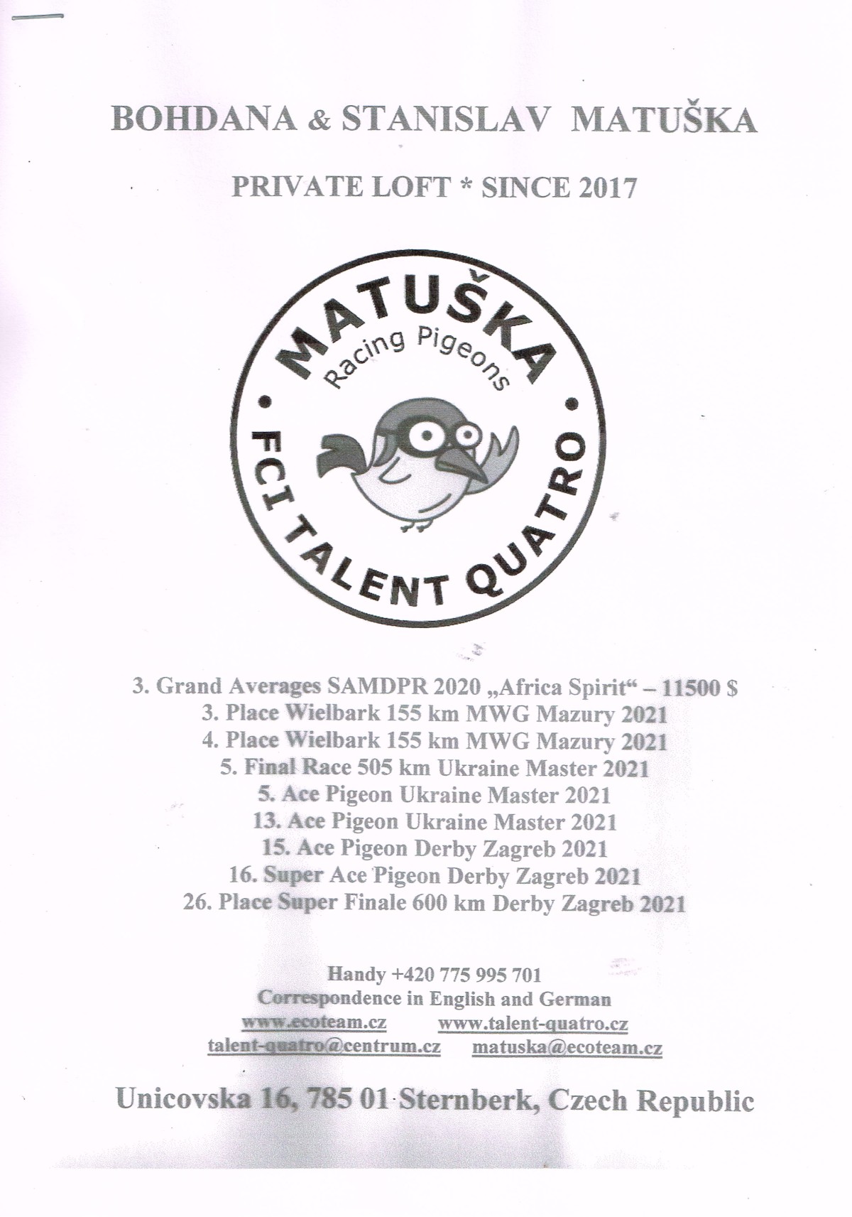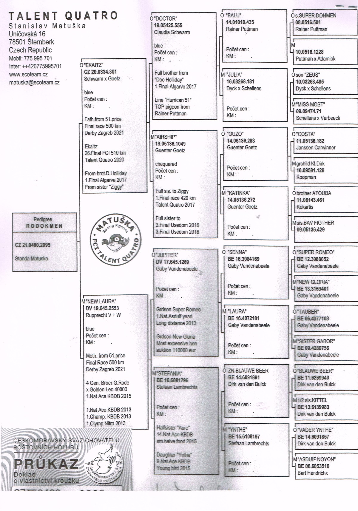 | Lot | Data | Dystans [km] | Ilość gołębi | Pozycja | Prędkość [m/min] |
