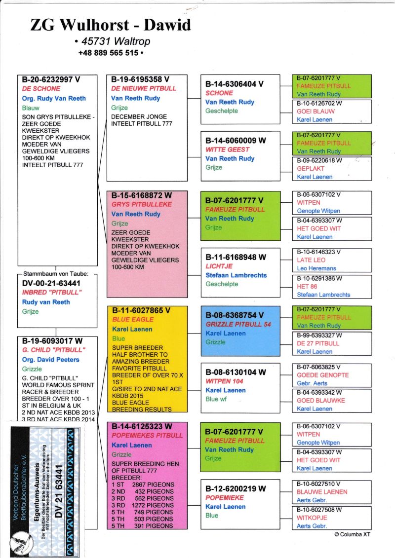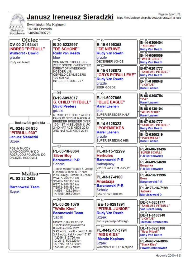 Oryginalny gołąb z hodowli Janusza Sieradzkiego. Szczegóły pochodzenia w rodowodzie. Więcej informacji pod nr tel.504780725