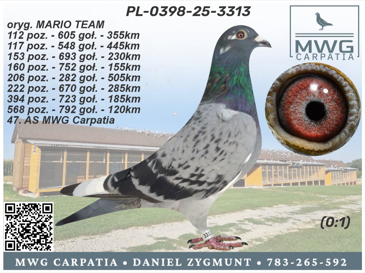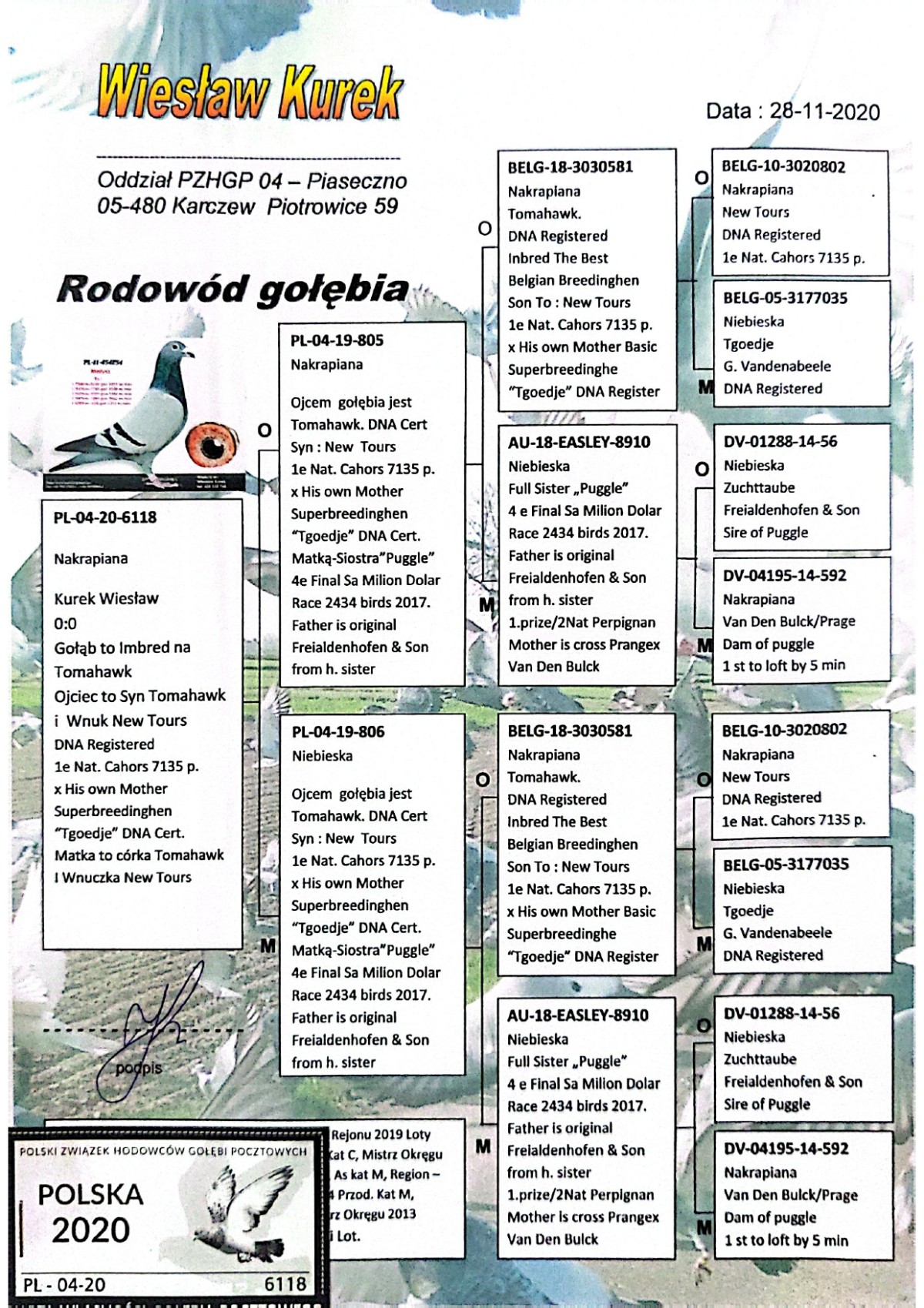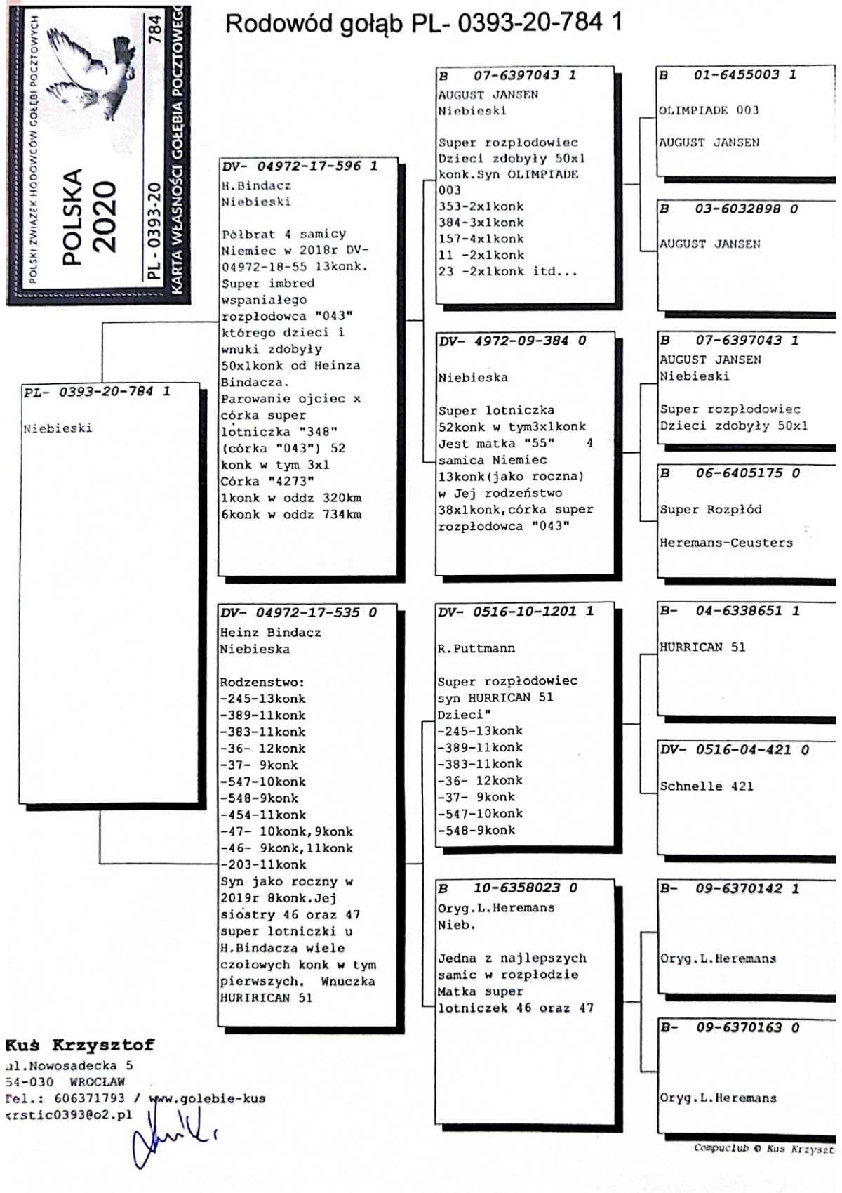 | Lot | Data | Dystans [km] | Ilość gołębi | Pozycja | Prędkość [m/min] |