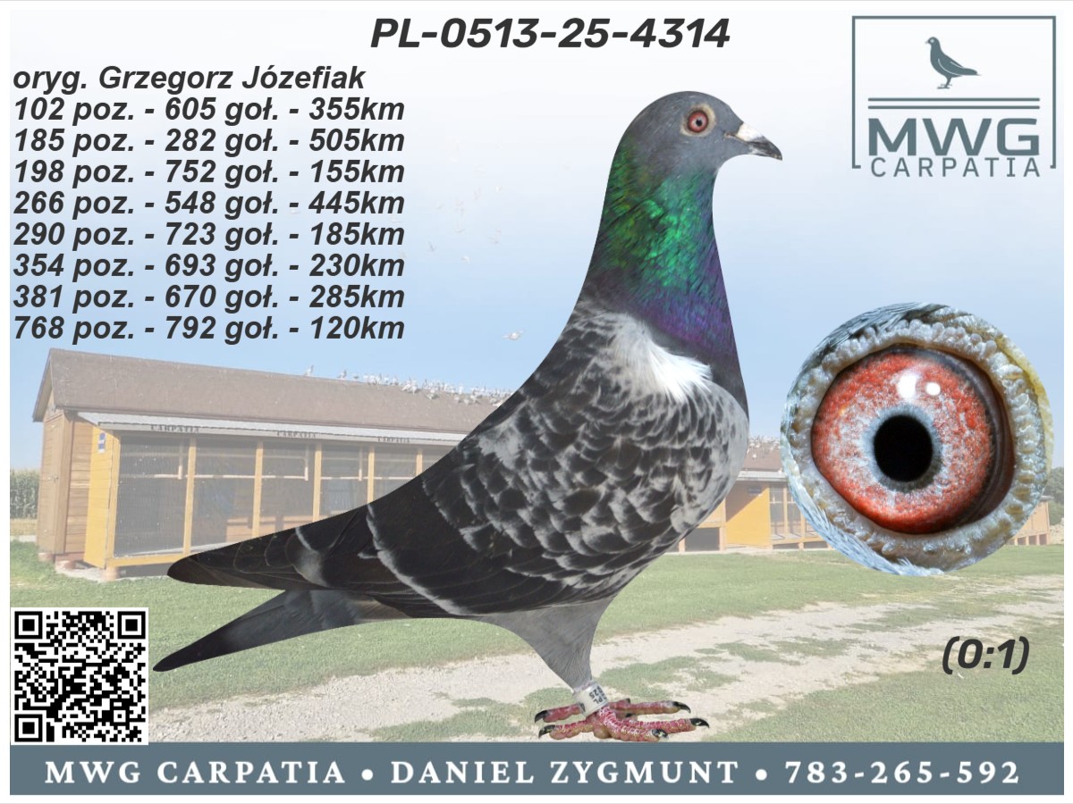| Lot | Data | Dystans [km] | Ilość gołębi | Pozycja | Prędkość [m/min] |