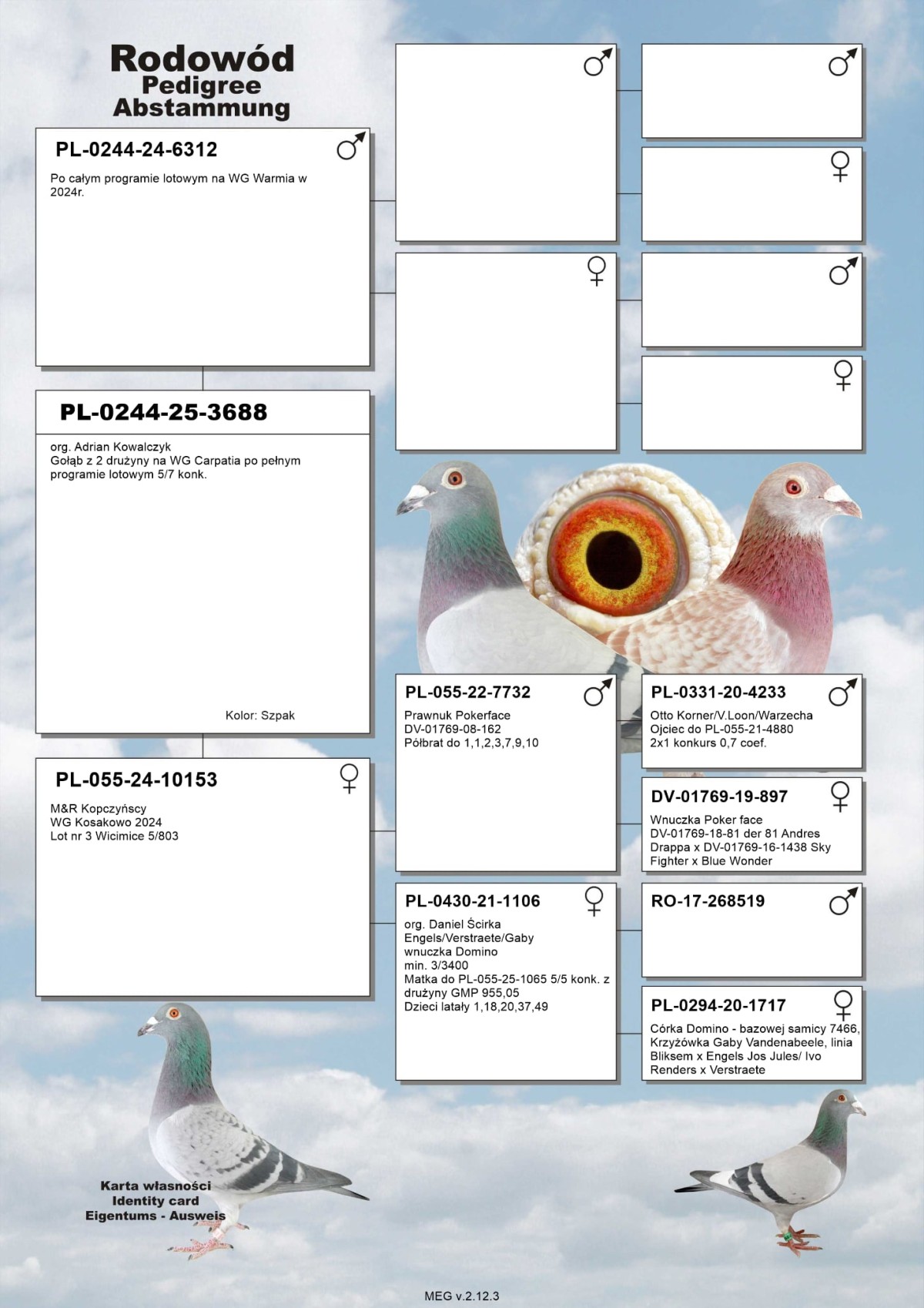 | Lot | Data | Dystans [km] | Ilość gołębi | Pozycja | Prędkość [m/min] |