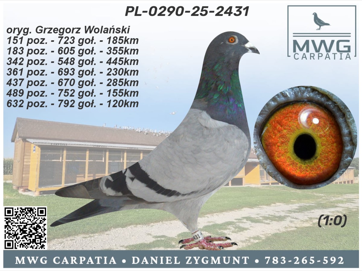 | Lot | Data | Dystans [km] | Ilość gołębi | Pozycja | Prędkość [m/min] |