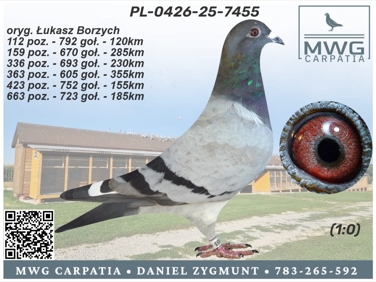 | Lot | Data | Dystans [km] | Ilość gołębi | Pozycja | Prędkość [m/min] |
