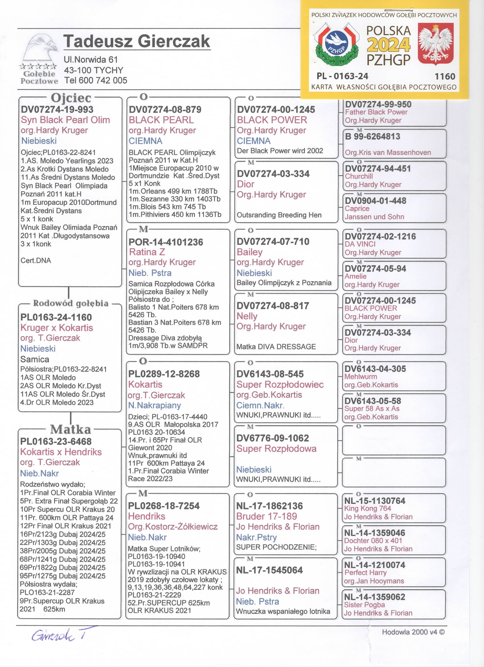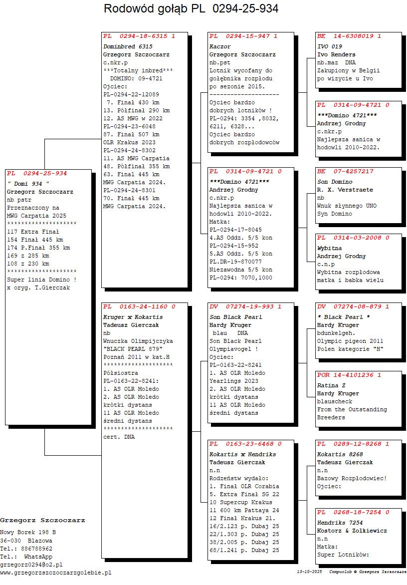 | Lot | Data | Dystans [km] | Ilość gołębi | Pozycja | Prędkość [m/min] |