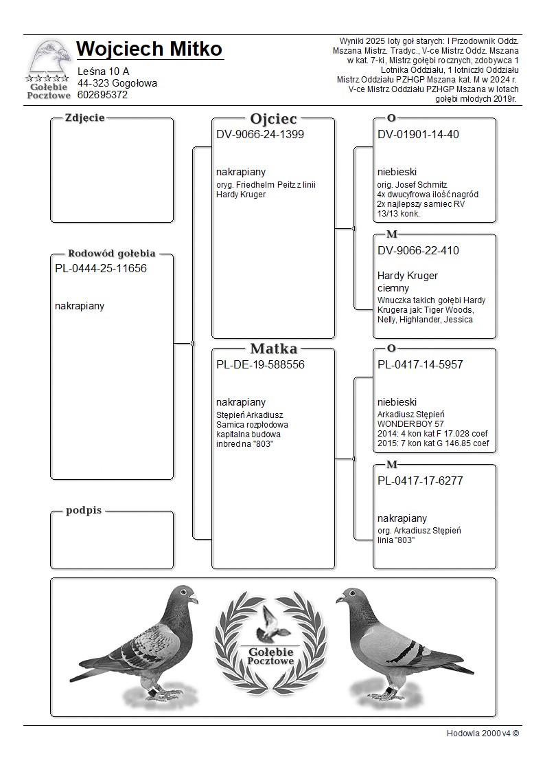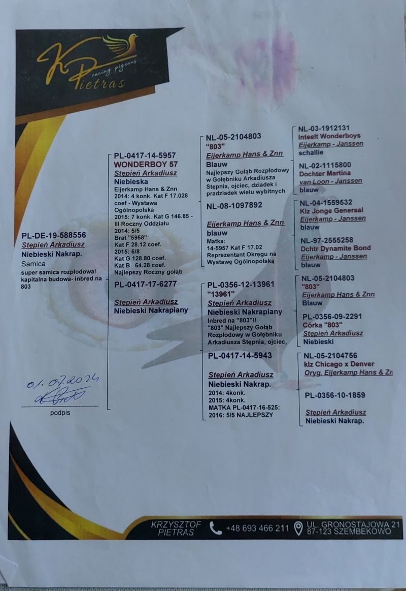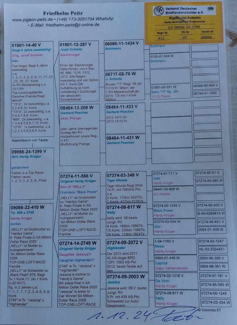 PL-0164-25-4477 młody gołąb Hardy Kruger/Team Schwarze - Laser