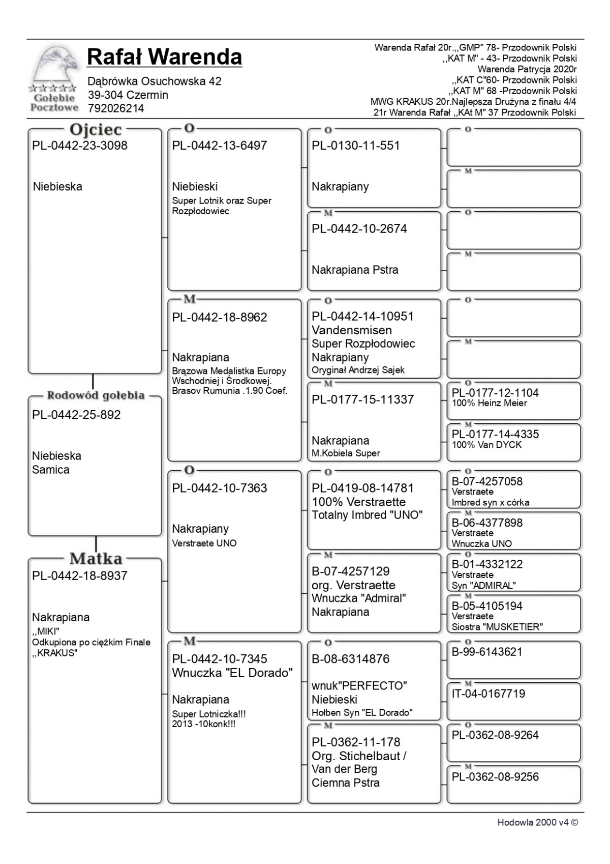 | Lot | Data | Dystans [km] | Ilość gołębi | Pozycja | Prędkość [m/min] |