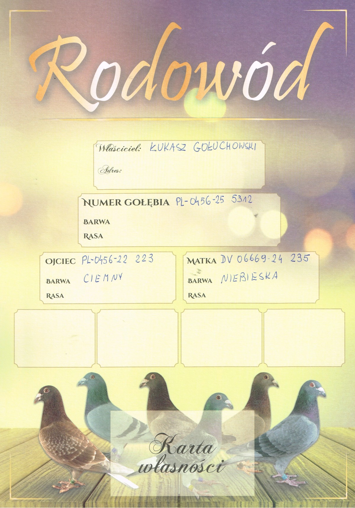 | Lot | Data | Dystans [km] | Ilość gołębi | Pozycja | Prędkość [m/min] |