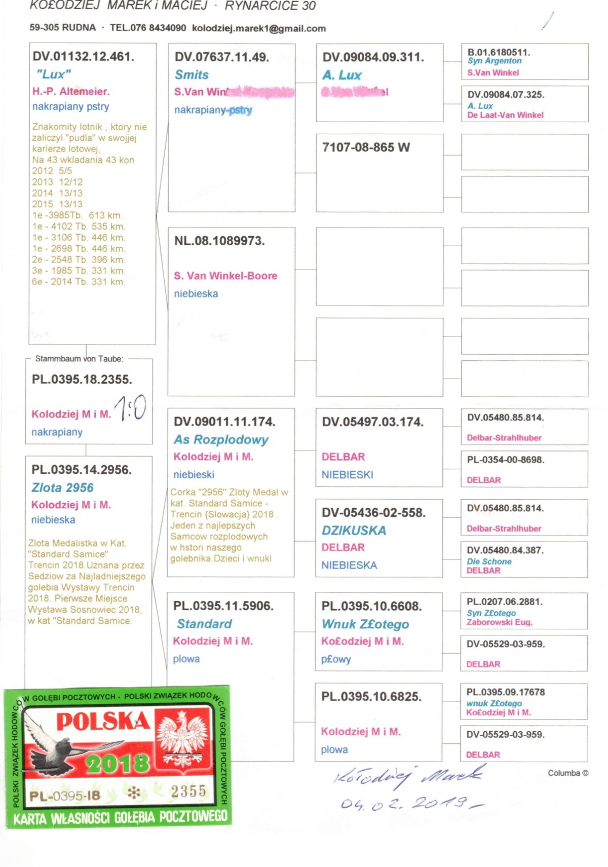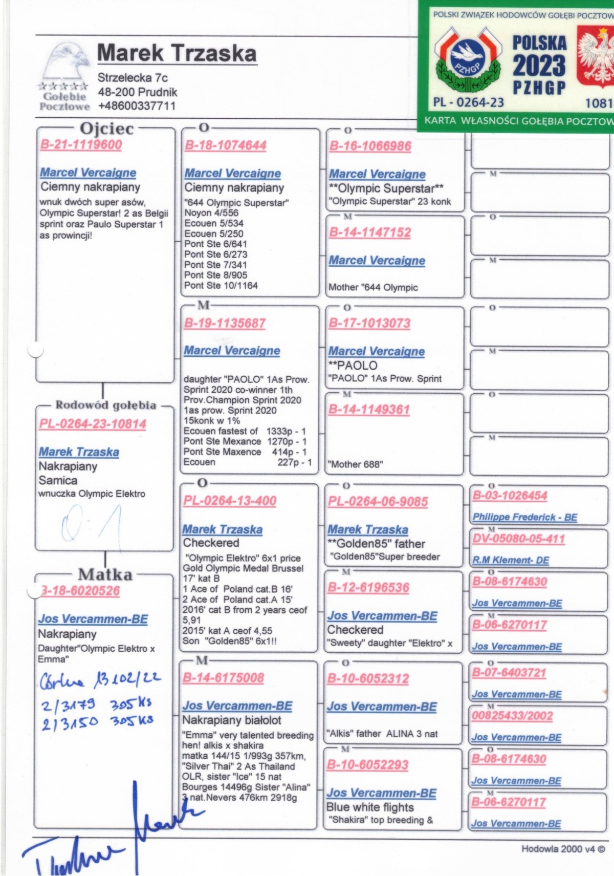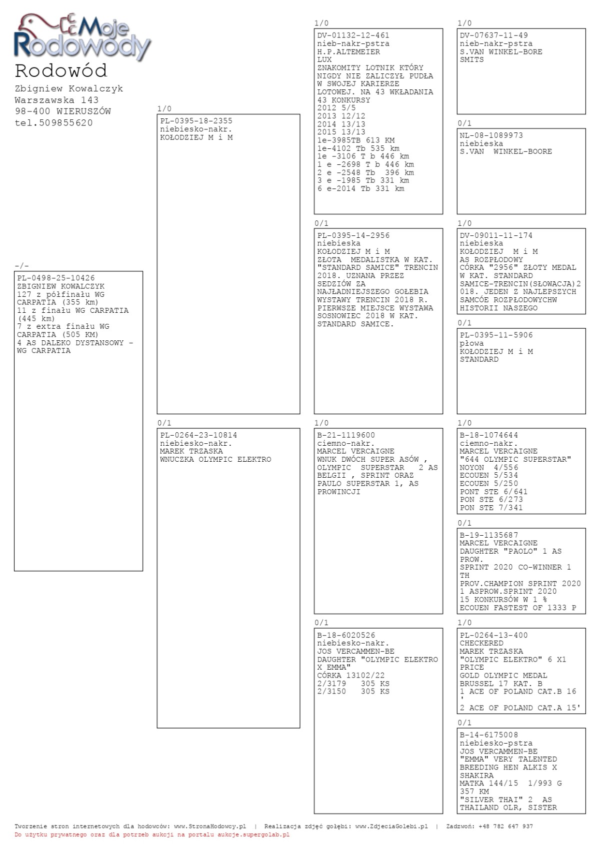 | Lot | Data | Dystans [km] | Ilość gołębi | Pozycja | Prędkość [m/min] |