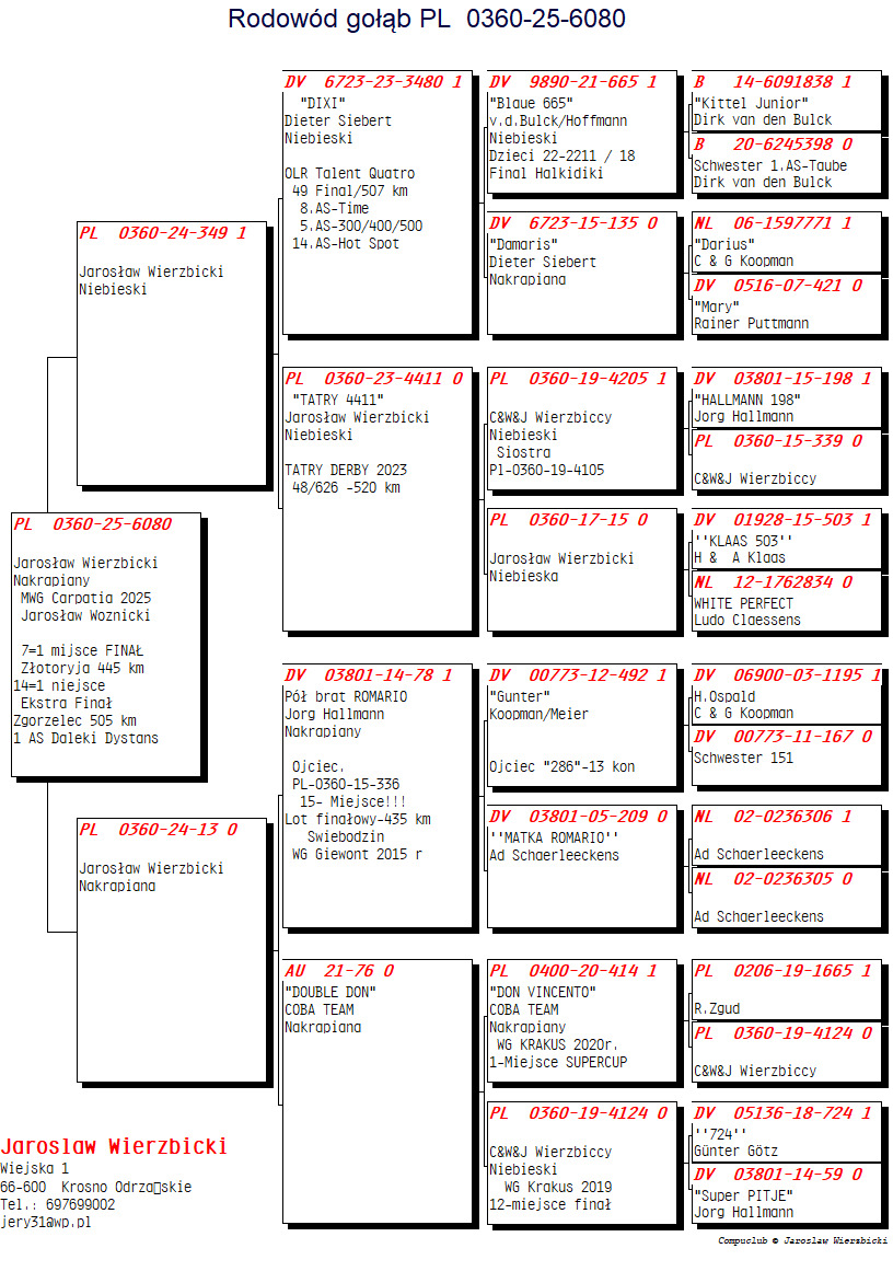 | Lot | Data | Dystans [km] | Ilość gołębi | Pozycja | Prędkość [m/min] |