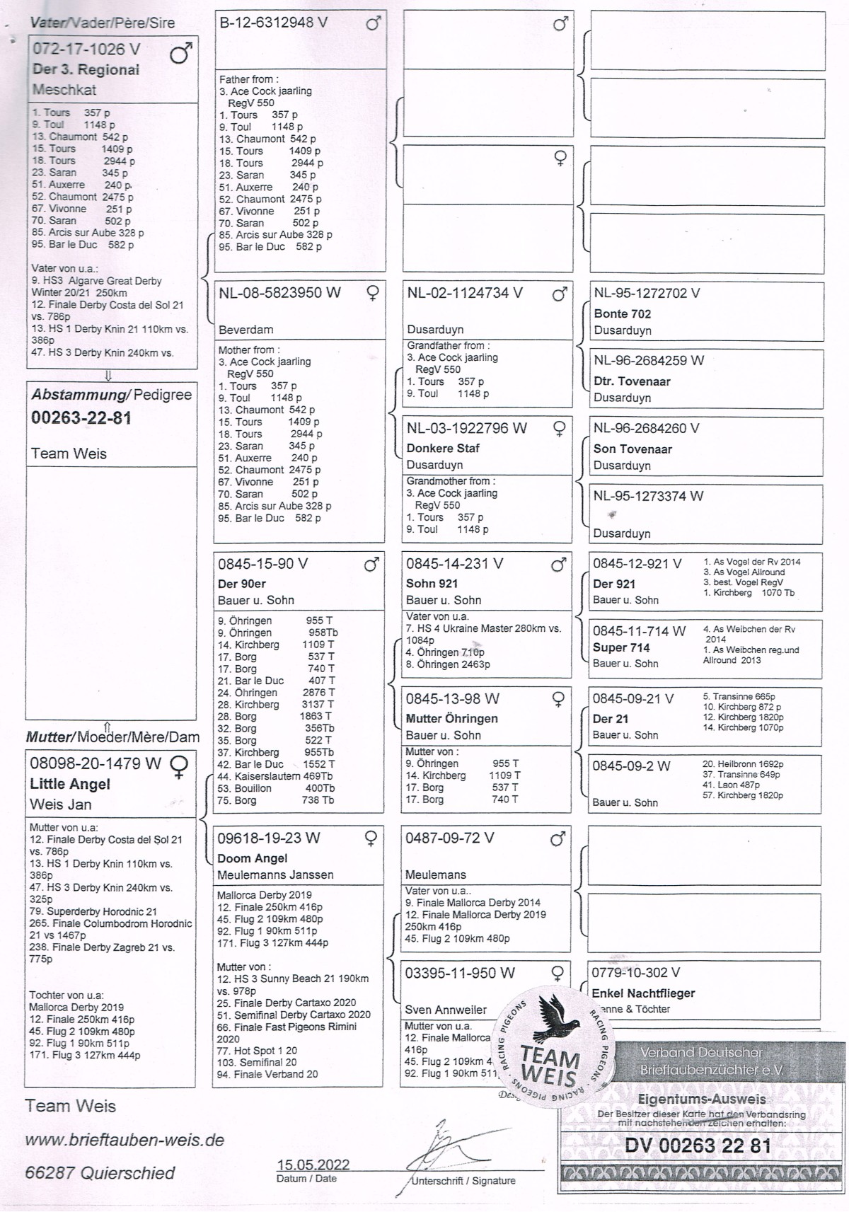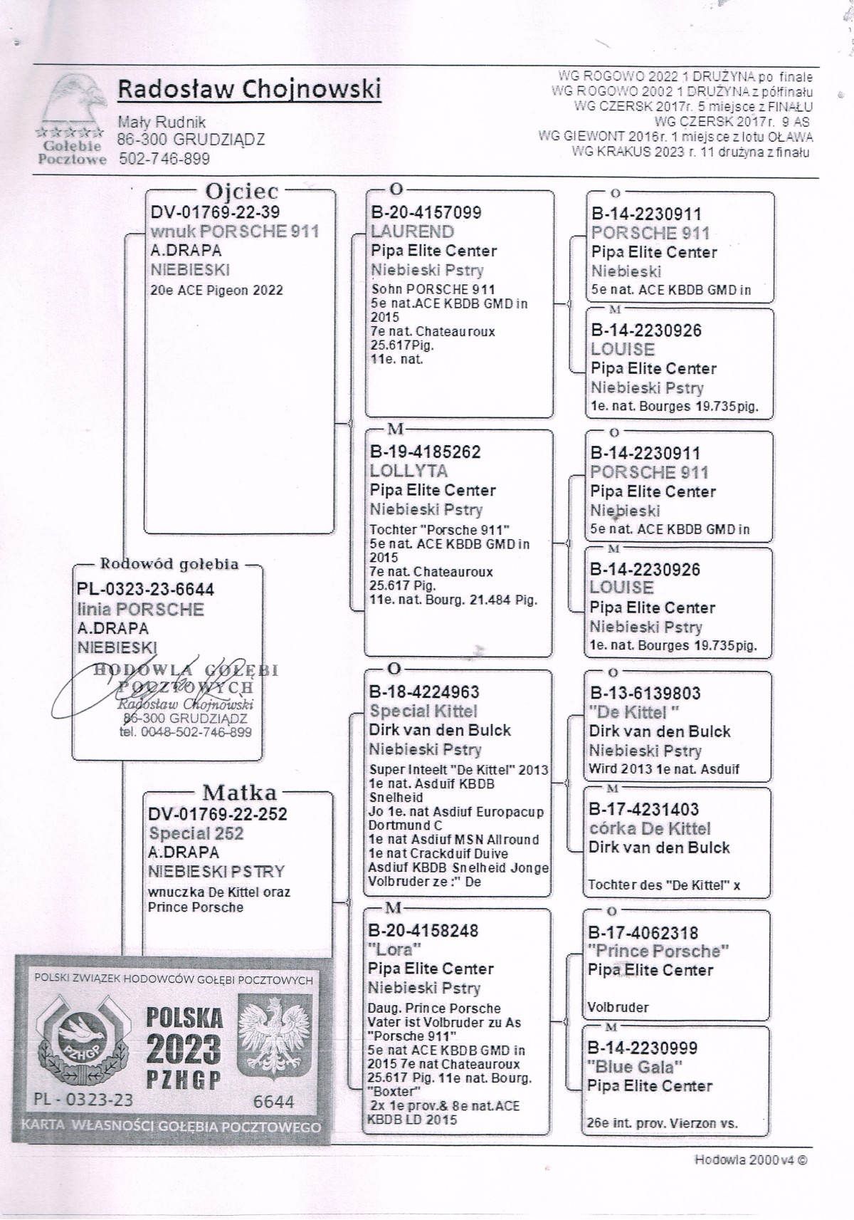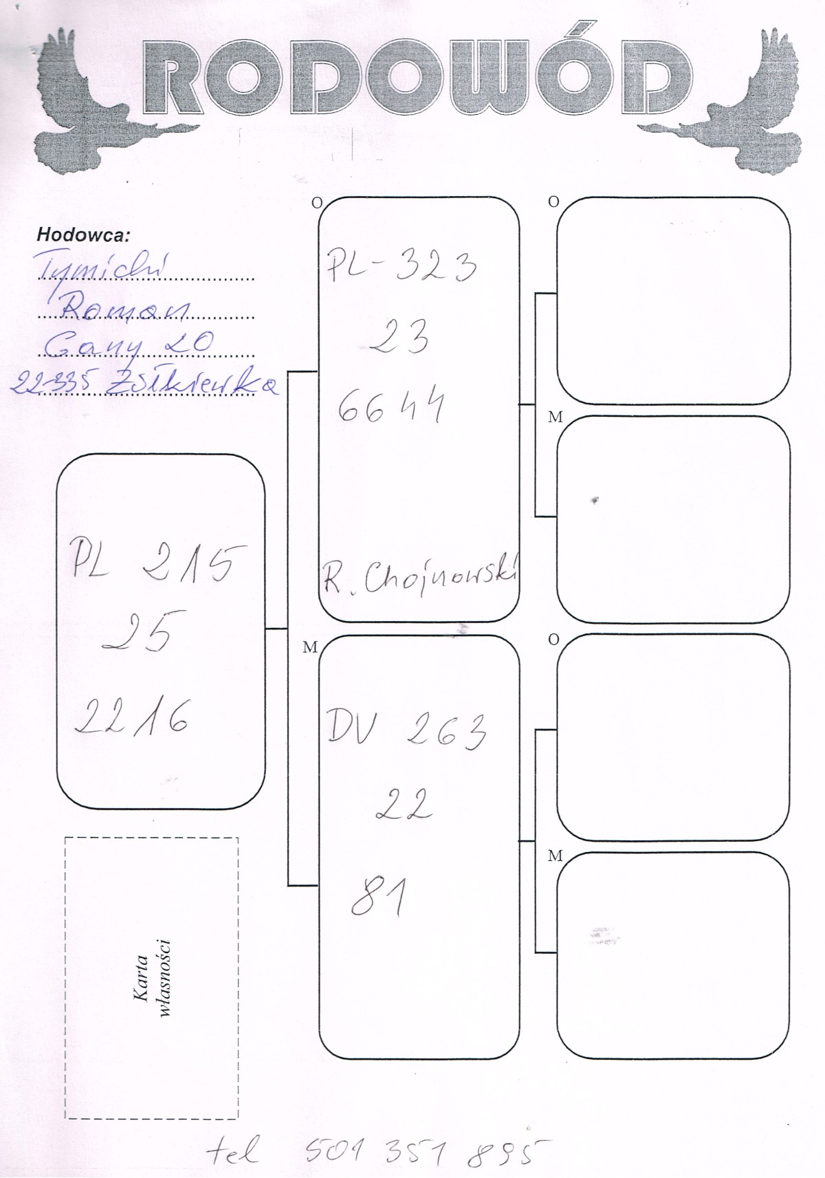| Lot | Data | Dystans [km] | Ilość gołębi | Pozycja | Prędkość [m/min] |