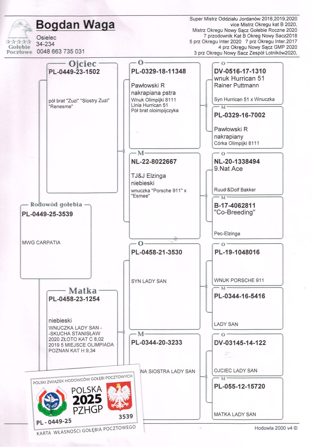 | Lot | Data | Dystans [km] | Ilość gołębi | Pozycja | Prędkość [m/min] |