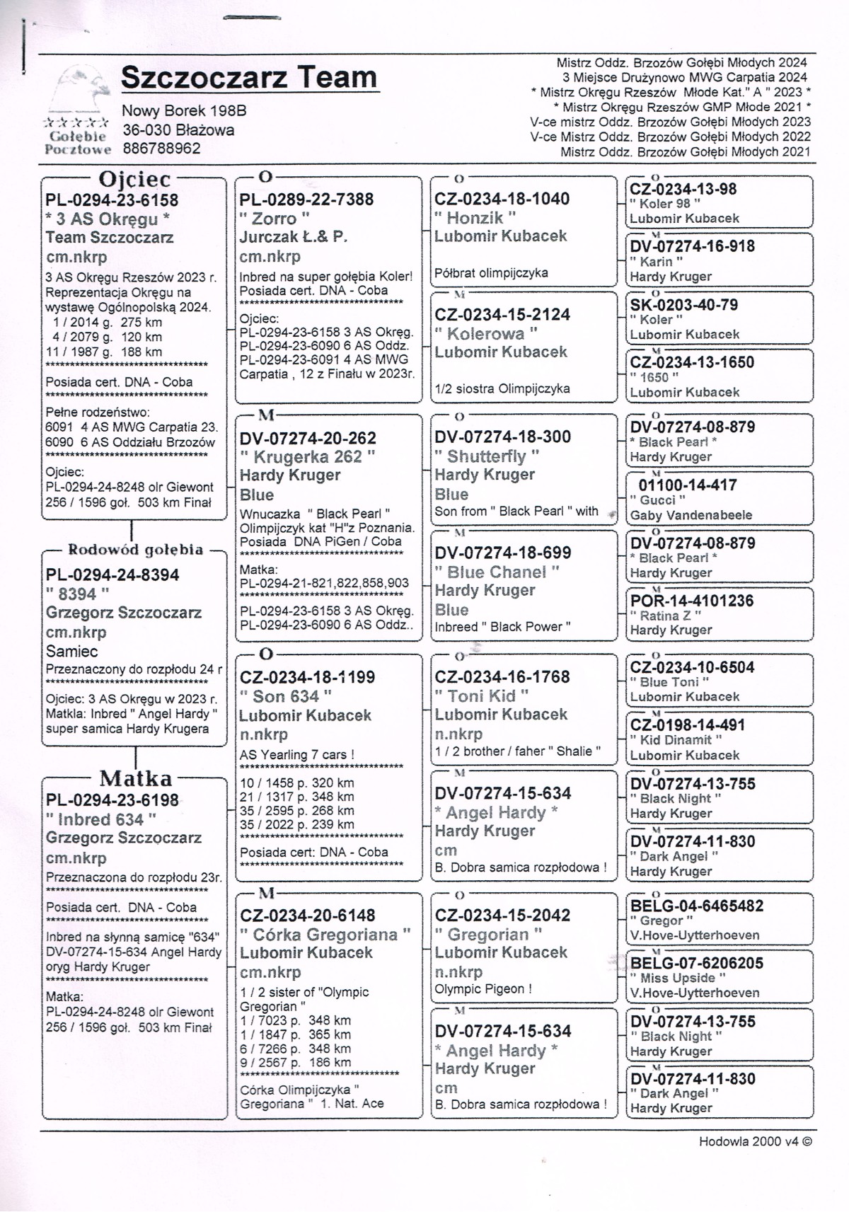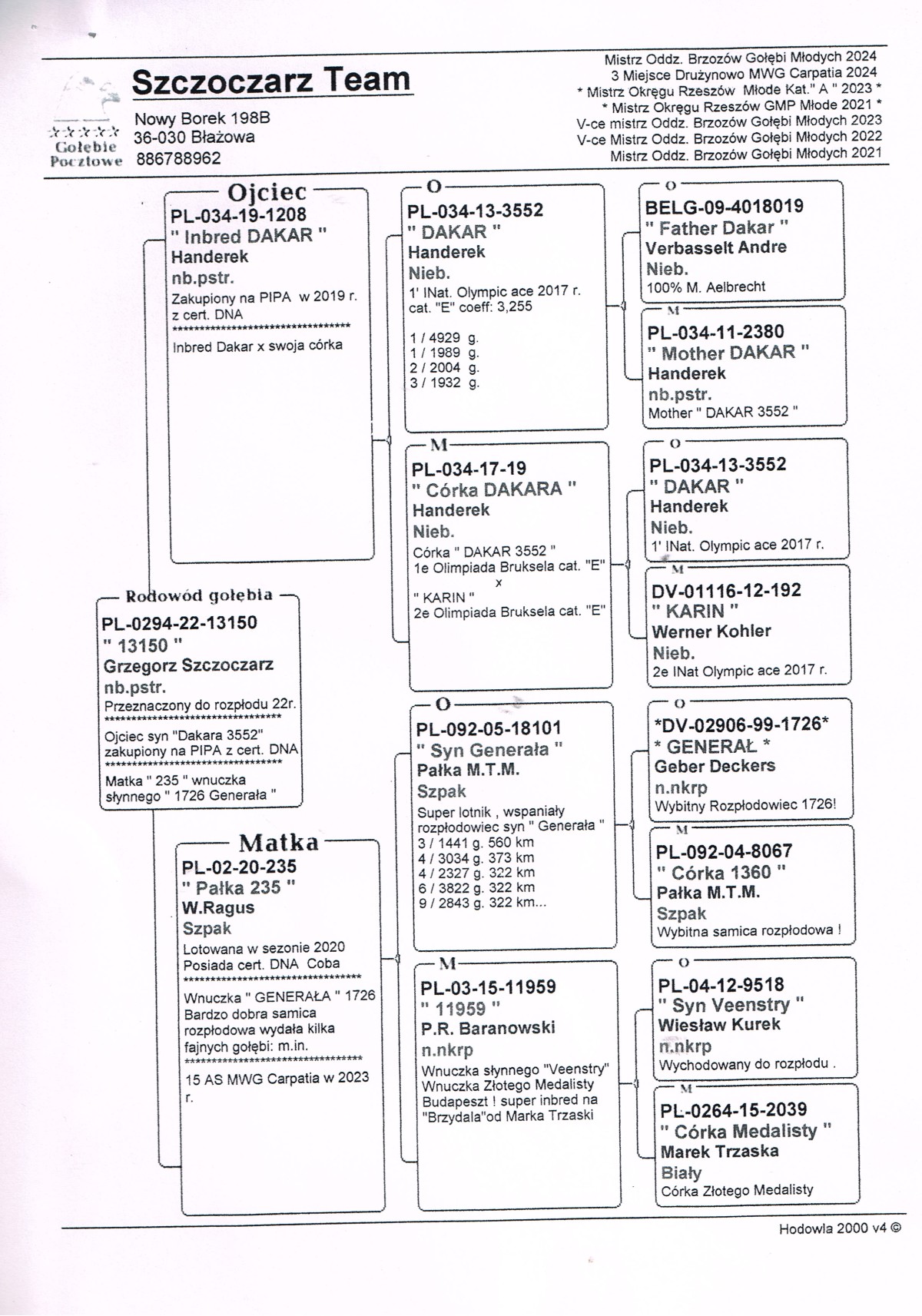 | Lot | Data | Dystans [km] | Ilość gołębi | Pozycja | Prędkość [m/min] |