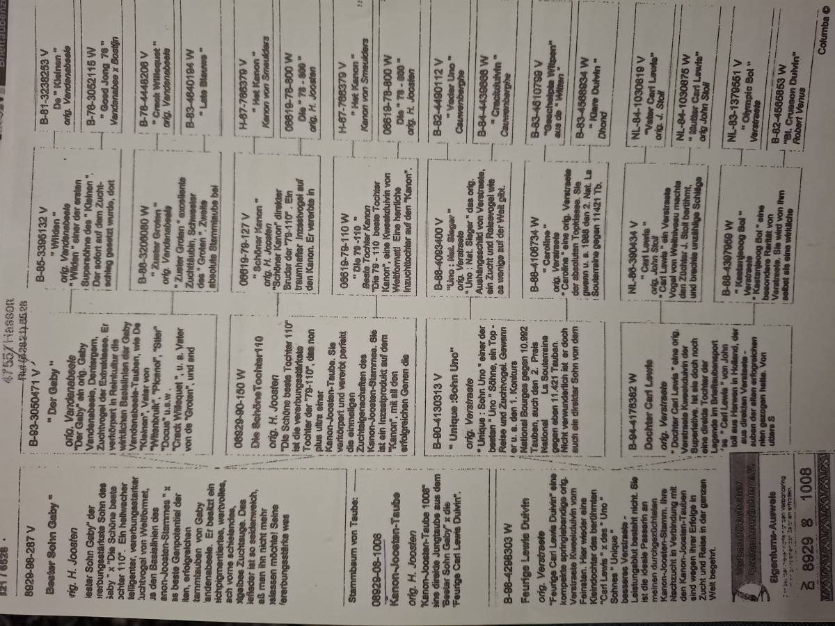 | Lot | Data | Dystans [km] | Ilość gołębi | Pozycja | Prędkość [m/min] |
