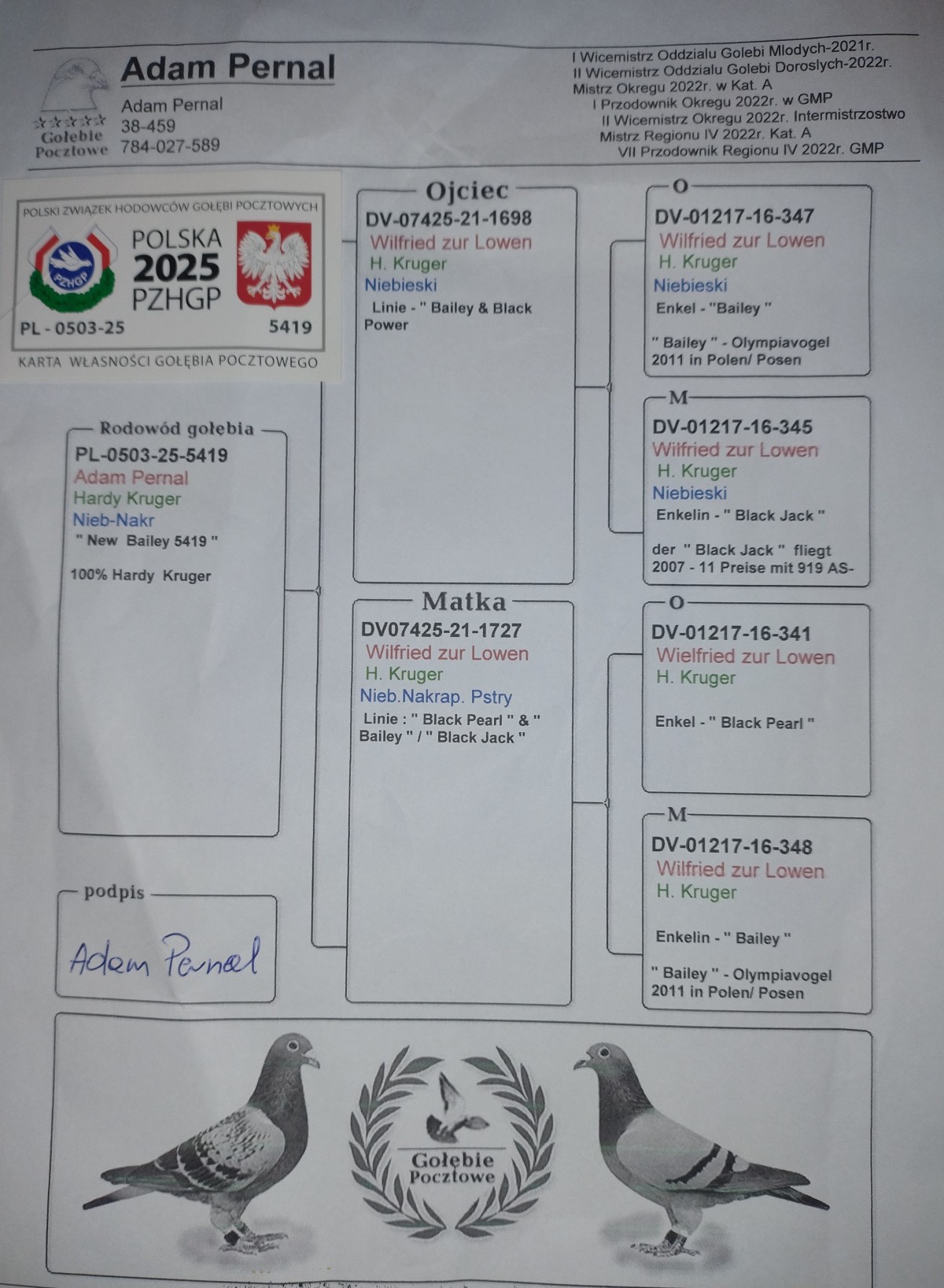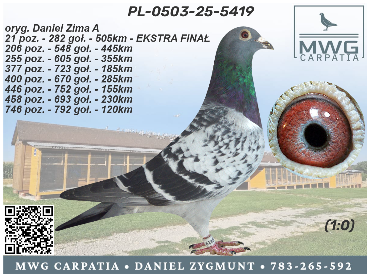 | Lot | Data | Dystans [km] | Ilość gołębi | Pozycja | Prędkość [m/min] |