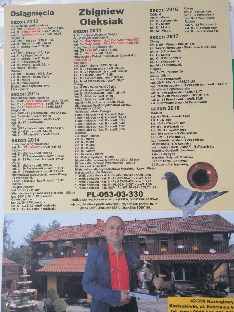 Płeć: młody gołąb Hodowca - rasa: Oryg Czuba Zbigniew Zakończenie: 3.11.2025 godz. 22:00