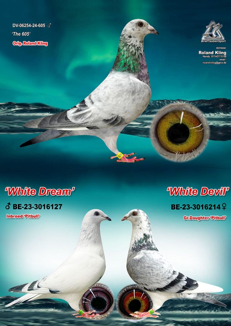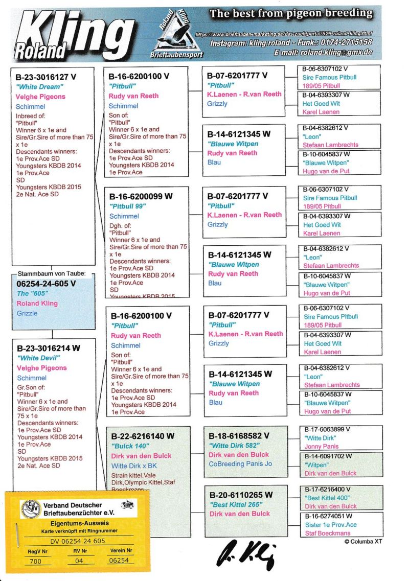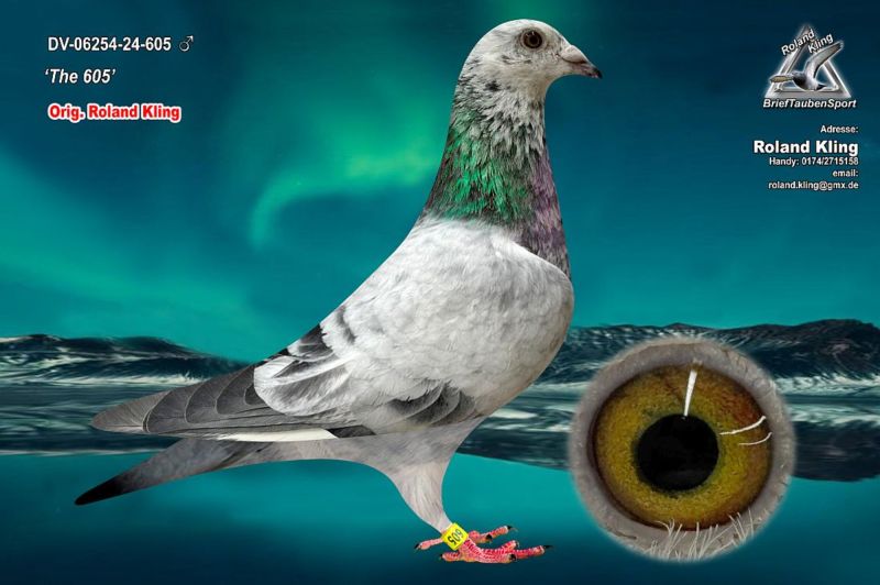 Oryginalny gołąb z hodowli Rolanda Klinga. Szczegóły pochodzenia w rodowodzie. Gołębie są już przywiezione do Polski i przed zakończeniem aukcji można je obejrzeć u kolegi Roberta Grochowskiego w Urbanowicach. Więcej informacji pod numerem telefonu 600133330