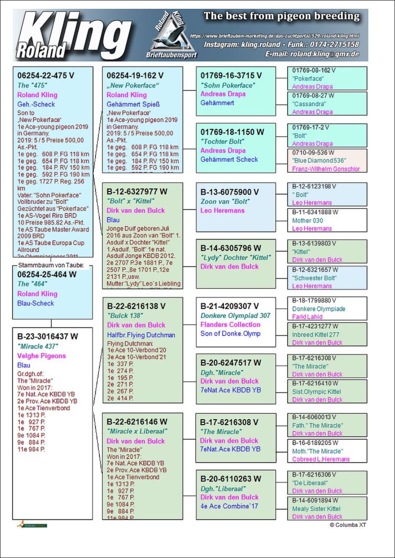 Oryginalny gołąb z hodowli Rolanda Klinga. Szczegóły pochodzenia w rodowodzie. Gołębie są już przywiezione do Polski i przed zakończeniem aukcji można je obejrzeć u kolegi Roberta Grochowskiego w Urbanowicach. Oferowany gołąb to prawdopodobnie SAMICA. Więcej informacji pod numerem telefonu 600133330