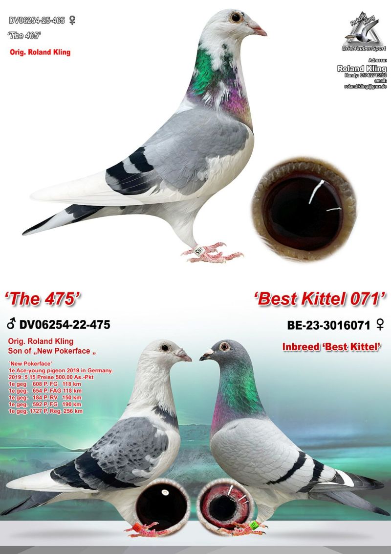 Oryginalny gołąb z hodowli Rolanda Klinga. Szczegóły pochodzenia w rodowodzie. Gołębie są już przywiezione do Polski i przed zakończeniem aukcji można je obejrzeć u kolegi Roberta Grochowskiego w Urbanowicach. Oferowany gołąb to prawdopodobnie SAMICA. Więcej informacji pod numerem telefonu 600133330