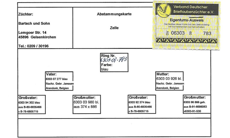 *prawdopodobnie samica** Oryginalny gołąb z hodowli Ryszard Lebiedziejewskiego. Szczegóły pochodzenia w rodowodzie. Więcej informacji pod nr tel.: 530 152 182. **Gołębie po kuracjach przygotowane do sezonu. **Transport gołębi prywatnym kurierem 100 zł do 3 szt. od 4szt do 6szt 150zł.