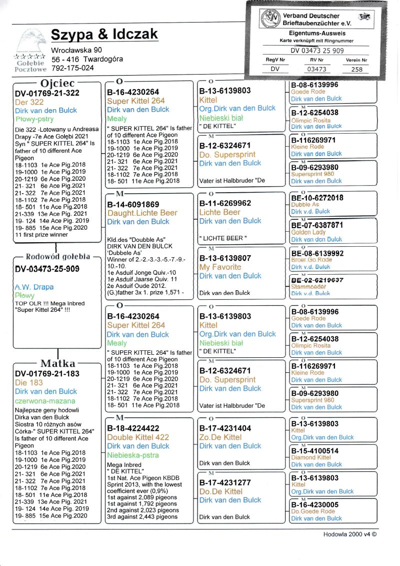 Profesjonalna hodowla z wieloletnim doświadczeniem, posiadająca w swoim stadzie materiał najwyższej światowej klasy. Więcej informacji w załączonych materiałach oraz pod nr tel. 792-175-024 Oferowany gołąb to prawdopodobnie SAMCZYK. Płeć pisana orientacyjnie Wysyłka 100 zł
