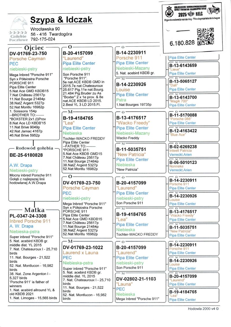 Profesjonalna hodowla z wieloletnim doświadczeniem, posiadająca w swoim stadzie materiał najwyższej światowej klasy. Więcej informacji w załączonych materiałach oraz pod nr tel. 792-175-024 Oferowany gołąb to prawdopodobnie SAMCZYK. Płeć pisana orientacyjnie Wysyłka 100 zł