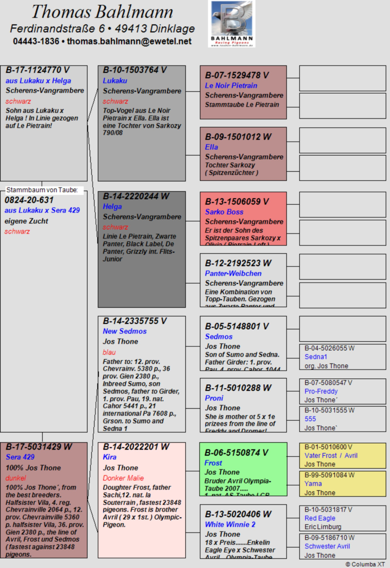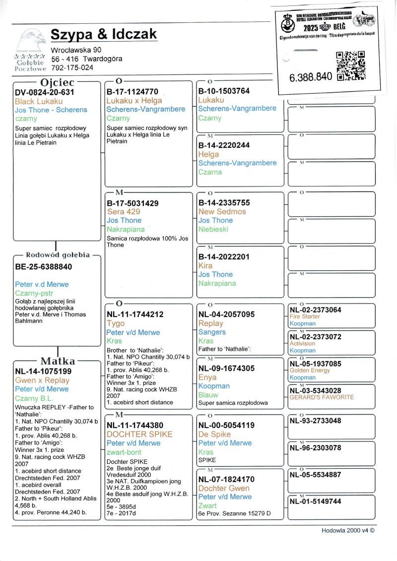 Profesjonalna hodowla z wieloletnim doświadczeniem, posiadająca w swoim stadzie materiał najwyższej światowej klasy. Więcej informacji w załączonych materiałach oraz pod nr tel. 792-175-024 Oferowany gołąb to prawdopodobnie SAMCZYK. Płeć pisana orientacyjnie Wysyłka 100 zł
