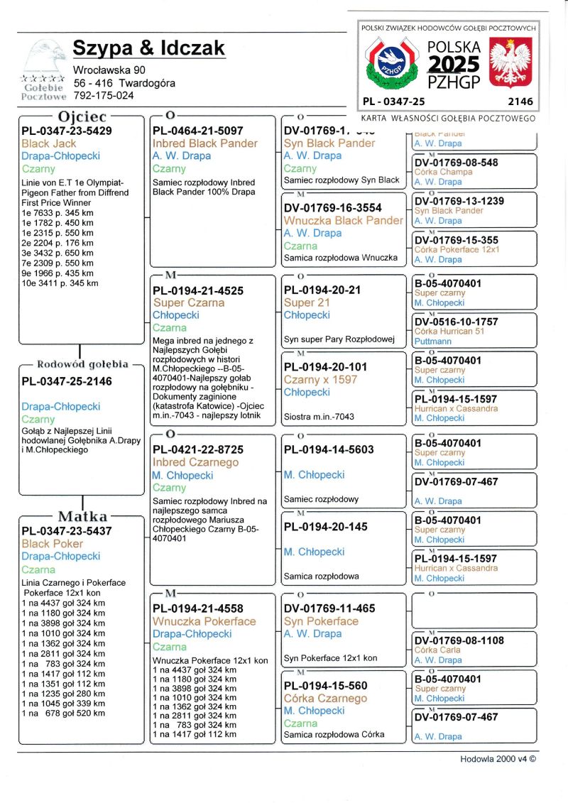 Profesjonalna hodowla z wieloletnim doświadczeniem, posiadająca w swoim stadzie materiał najwyższej światowej klasy. Więcej informacji w załączonych materiałach oraz pod nr tel. 792-175-024 Oferowany gołąb to prawdopodobnie SAMCZYK. Płeć pisana orientacyjnie Wysyłka 100 zł