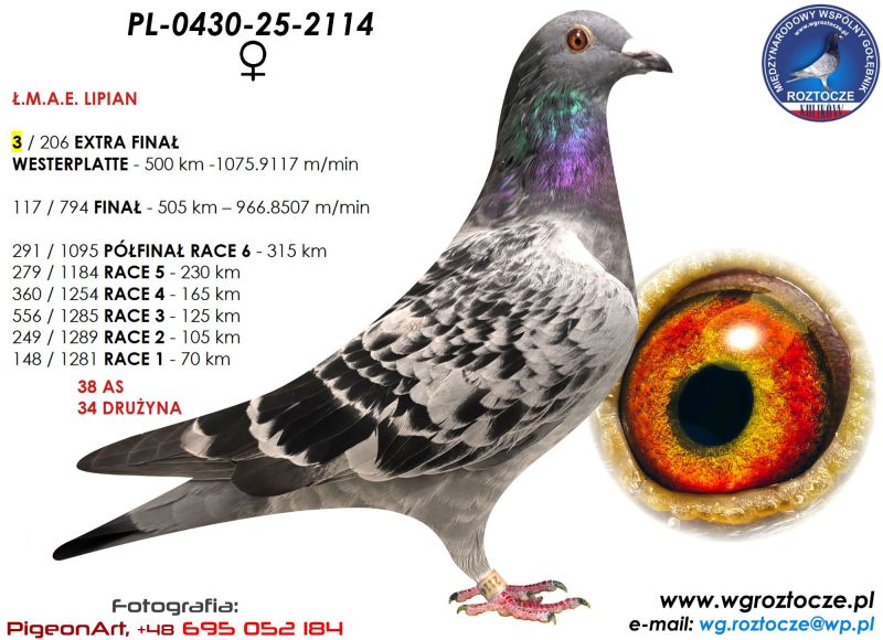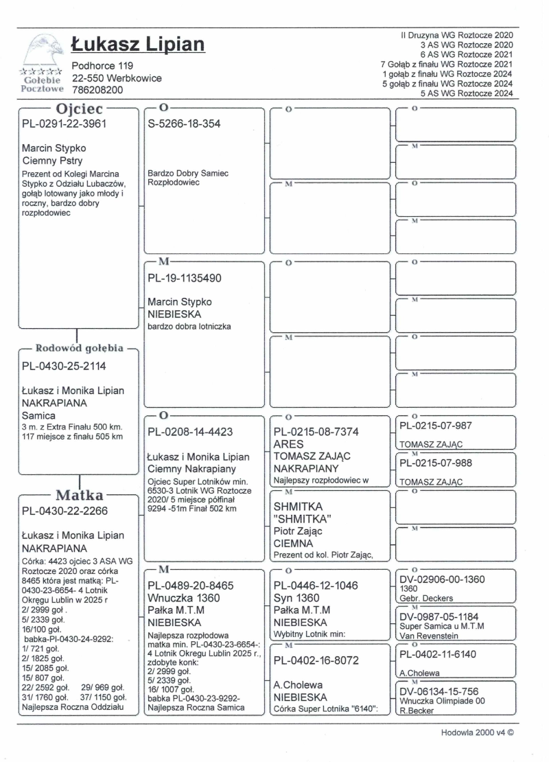 więcej info.w rodowodzie i na stronie Benzing Live. oneloftrace.live/lofts/260?season=2458&tab=flights