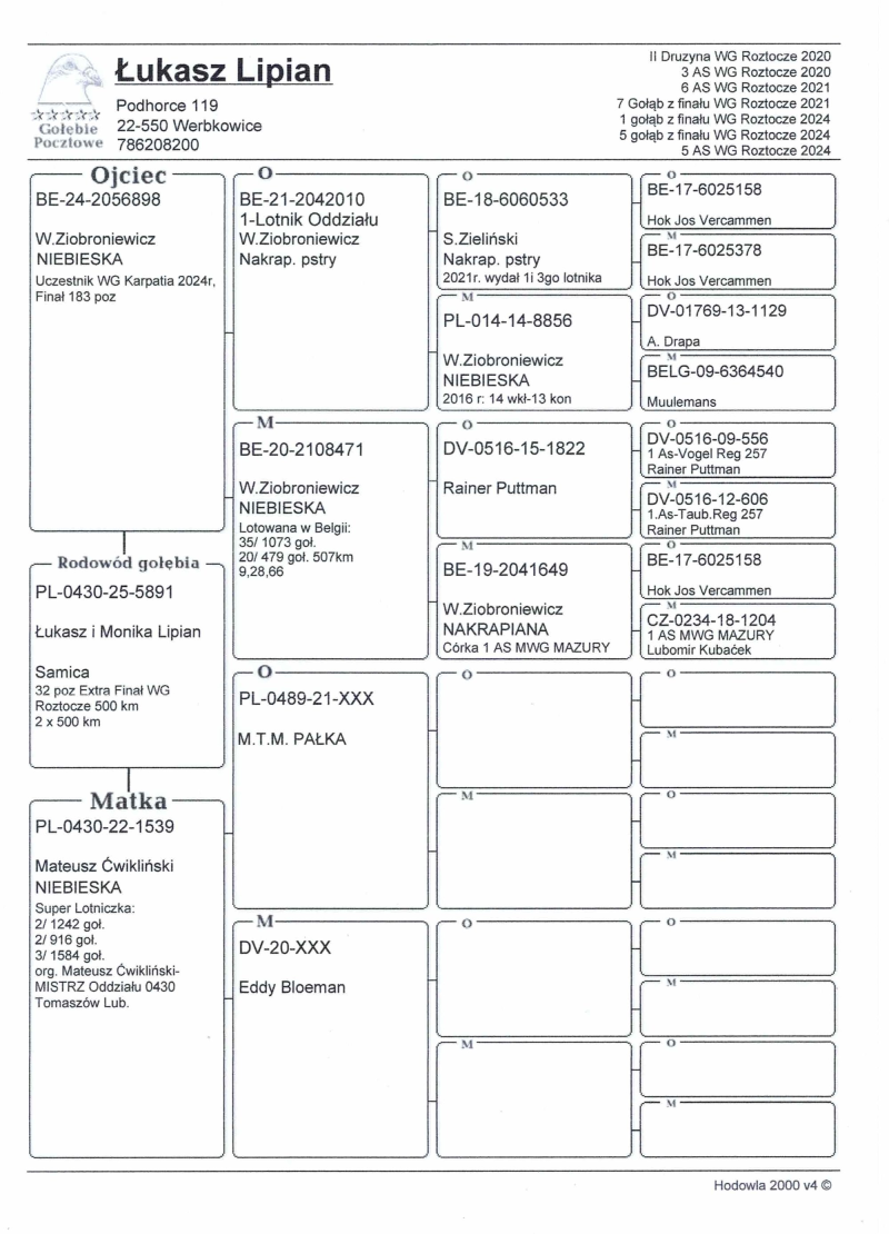 PL-0430-25-5891 WG ROZTOCZE FINAŁ 227poz.505km Extra Finał 32poz.500km 34 Drużyna 2x500km