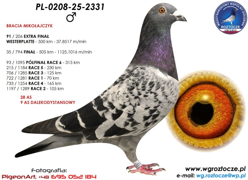 PL-0208-25-2331 WG ROZTOCZE FINAŁ 35poz.505km Extra Finał 91poz.500km 28AS i 9 AS Dalekodystansowy