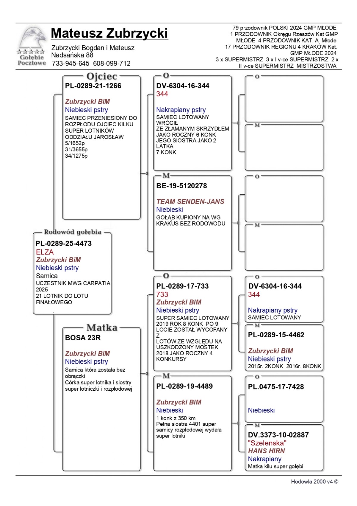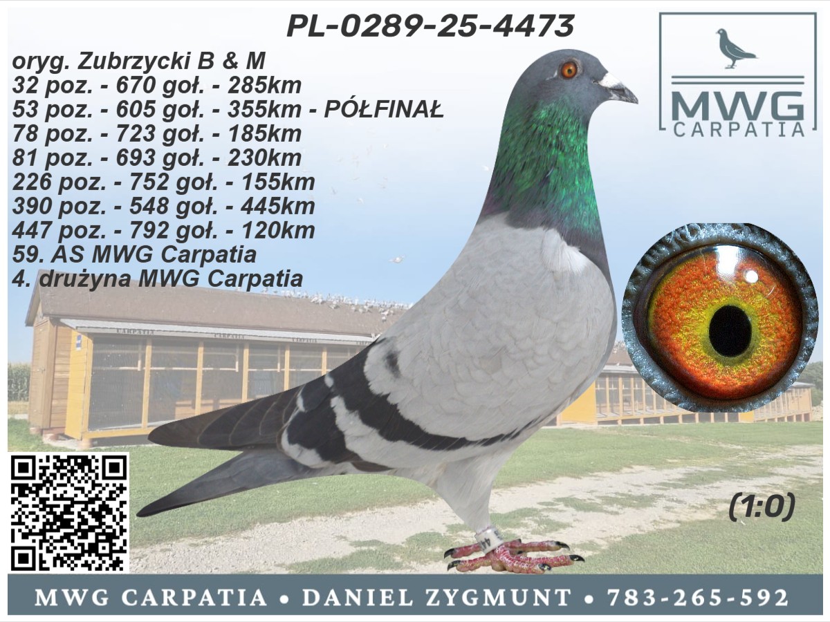 Opis: Gołąbek z MWG Carpatia, po całym sezonie lotowym 2025. Drużyna: Zubrzycki B & M, 32 z 285 km i 53 z 355 km. Zorganizowaliśmy 9 lotów treningowych do 92km oraz 7 lotów konkursowych od 120 do 445km, a także ekstra finał z odległości 505km. Ptaki łącznie zrobiły 2153km, a niektóre nawet 2658km. Cały sezon był ciężki i wymagający, więc wszystkie ptaki, które sobie poradziły są warte i cenne uwagi. Więcej informacji pod numerem 783-265-592. Transport 100 zł do 2szt. Do 3-4szt - 150zł. Powyżej 5szt - 200zł. Gołąbki zostaną dostarczone do 14 dni po zakończeniu aukcji. Zapraszamy do udziału w edycji 2026 :)