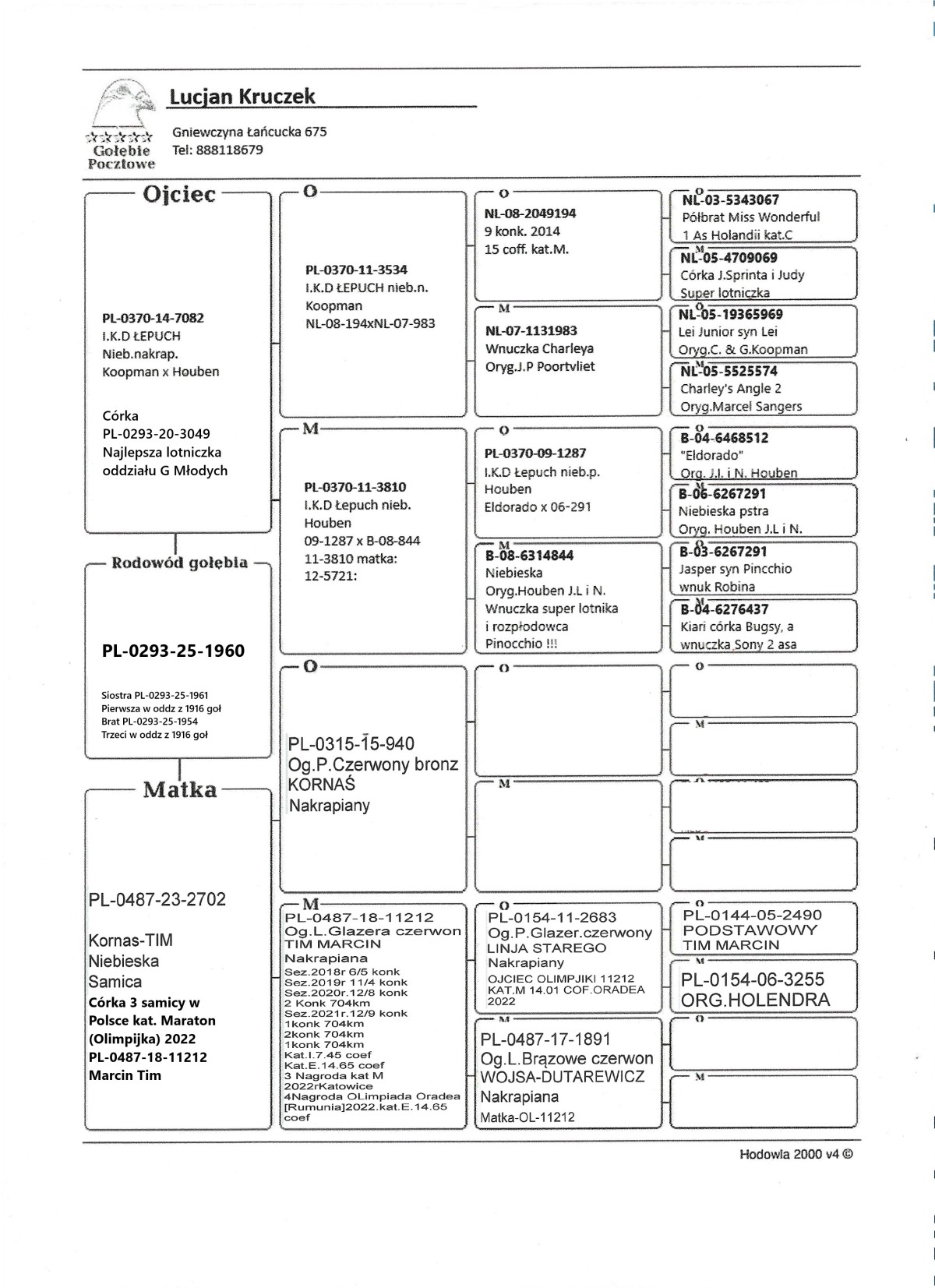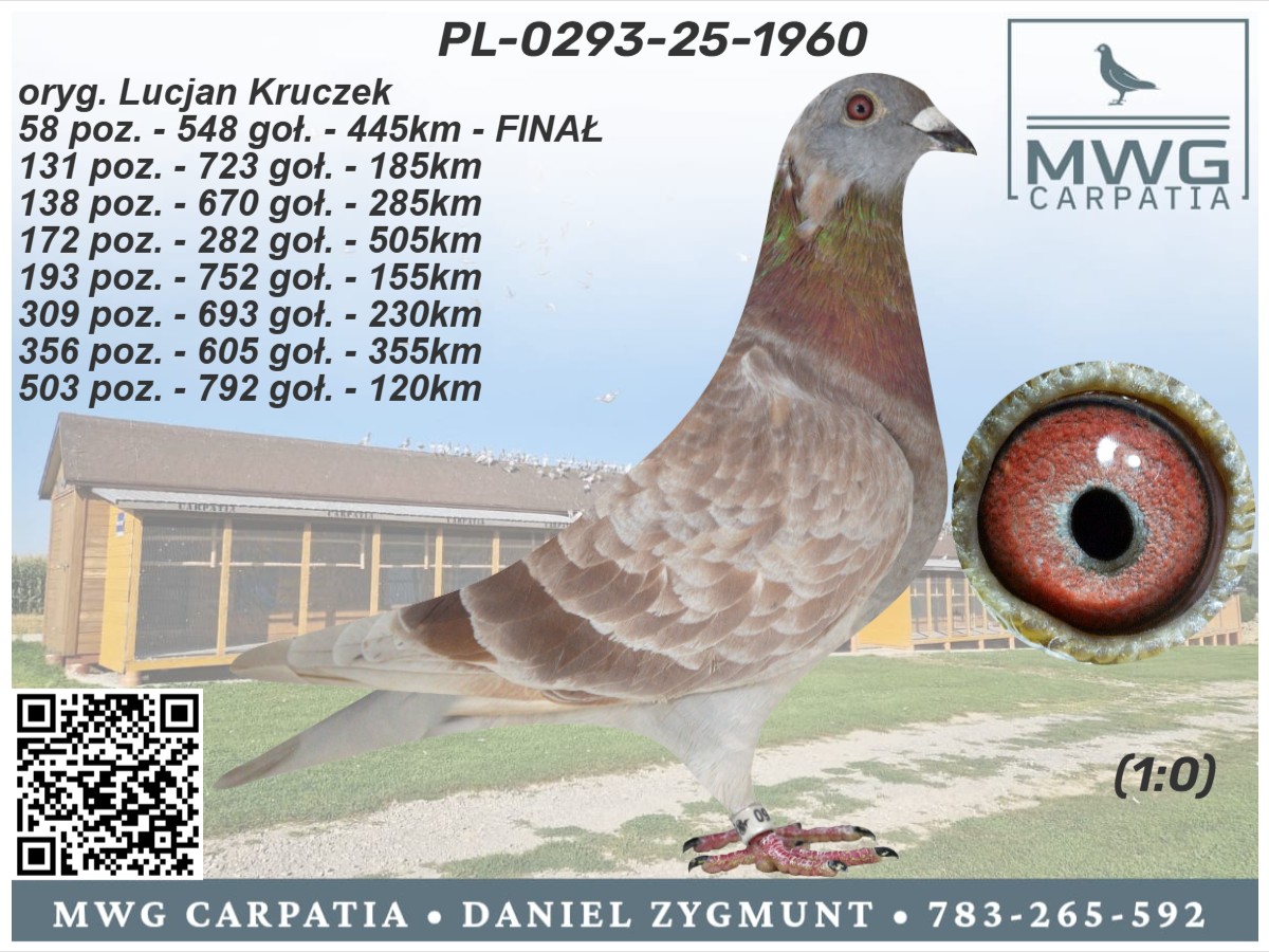 | Lot | Data | Dystans [km] | Ilość gołębi | Pozycja | Prędkość [m/min] |