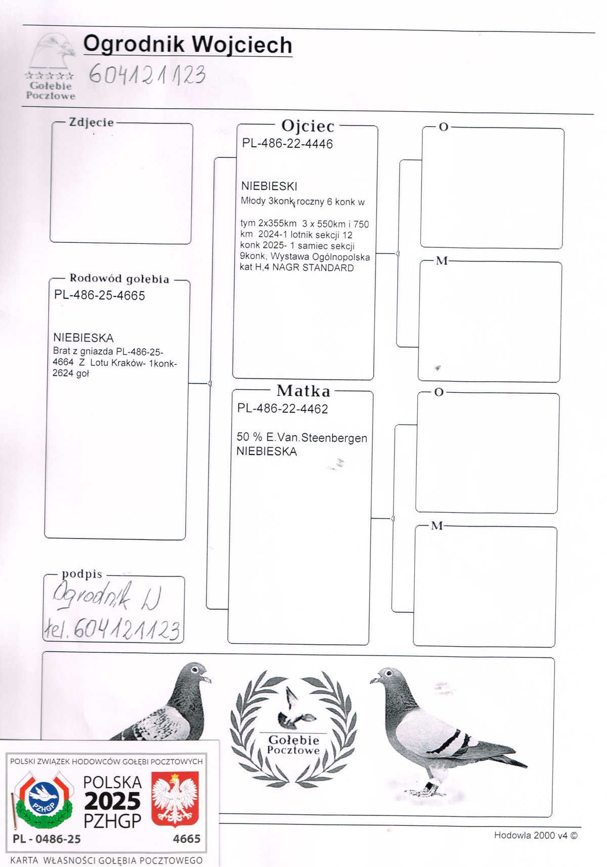 | Lot | Data | Dystans [km] | Ilość gołębi | Pozycja | Prędkość [m/min] |
