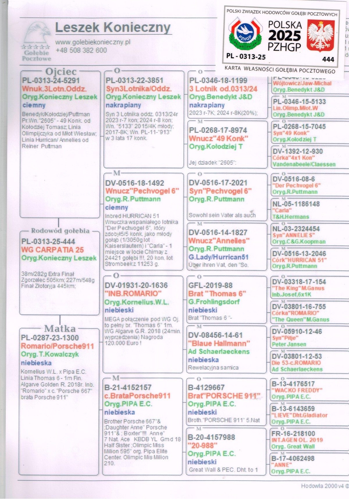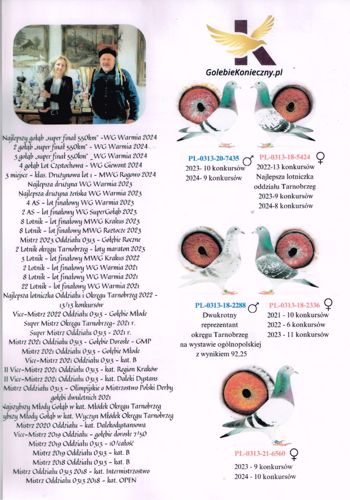 | Lot | Data | Dystans [km] | Ilość gołębi | Pozycja | Prędkość [m/min] |