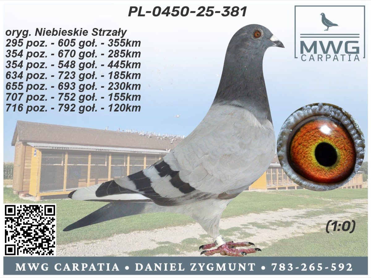 Opis: Gołąbek z MWG Carpatia, po całym sezonie lotowym 2025. Drużyna: Niebieskie Strzały, 295 z 355 km i 354 z 285 km. Zorganizowaliśmy 9 lotów treningowych do 92km oraz 7 lotów konkursowych od 120 do 445km, a także ekstra finał z odległości 505km. Ptaki łącznie zrobiły 2153km, a niektóre nawet 2658km. Cały sezon był ciężki i wymagający, więc wszystkie ptaki, które sobie poradziły są warte i cenne uwagi. Więcej informacji pod numerem 783-265-592. Transport 100 zł do 2szt. Do 3-4szt - 150zł. Powyżej 5szt - 200zł. Gołąbki zostaną dostarczone do 14 dni po zakończeniu aukcji. Zapraszamy do udziału w edycji 2026 :)